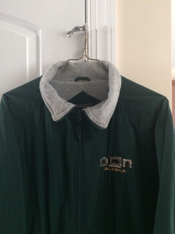 I have a green fleece lined zip front jacket with a large inside storage zipper close pocket it's a size size large/extra large. From a smoke and pet free home. Please see other items I'm selling. Feel free to contact me with questions or to try it on. Thank you!