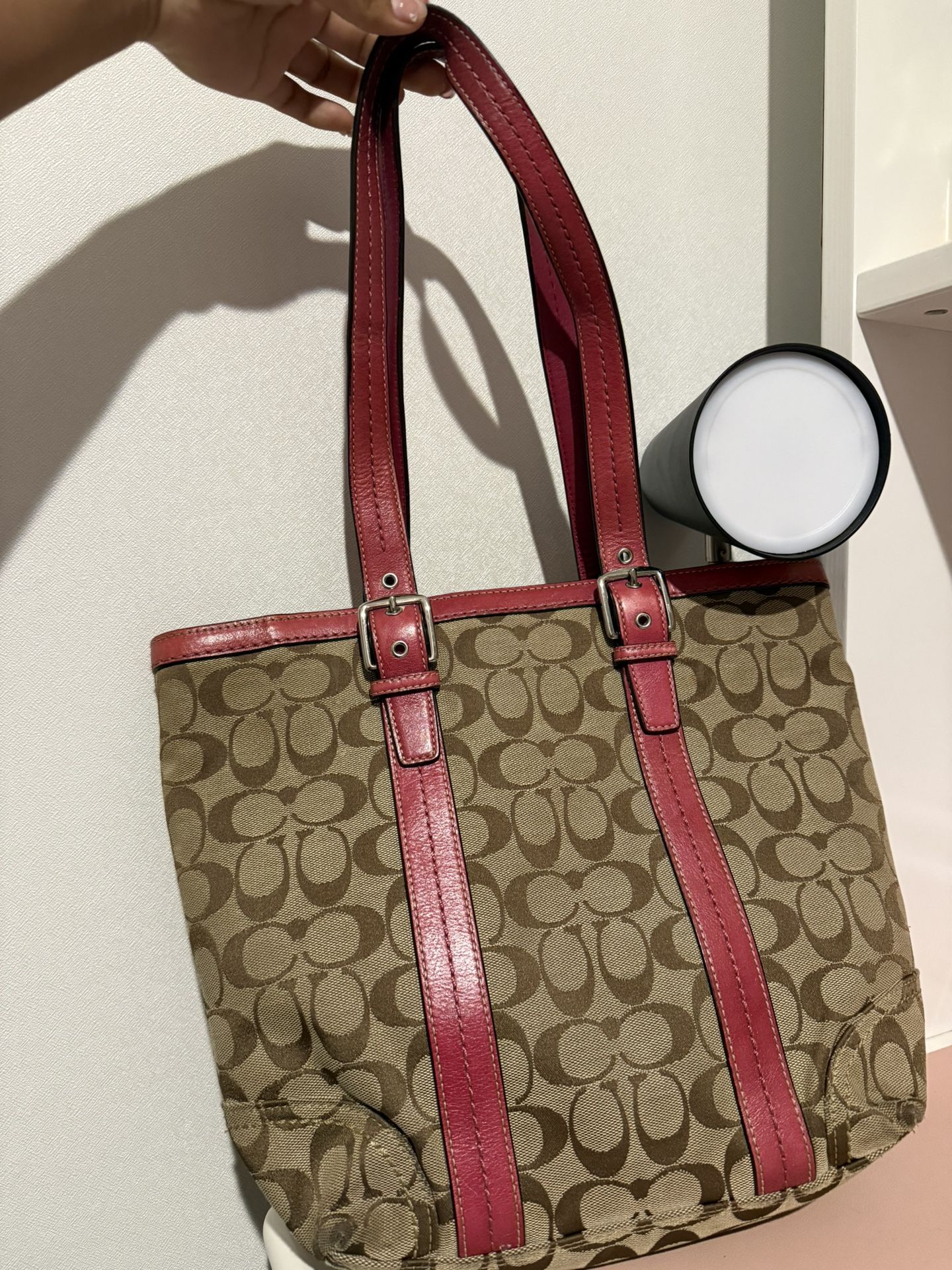 Coach Canvas With Pink Leather Straps