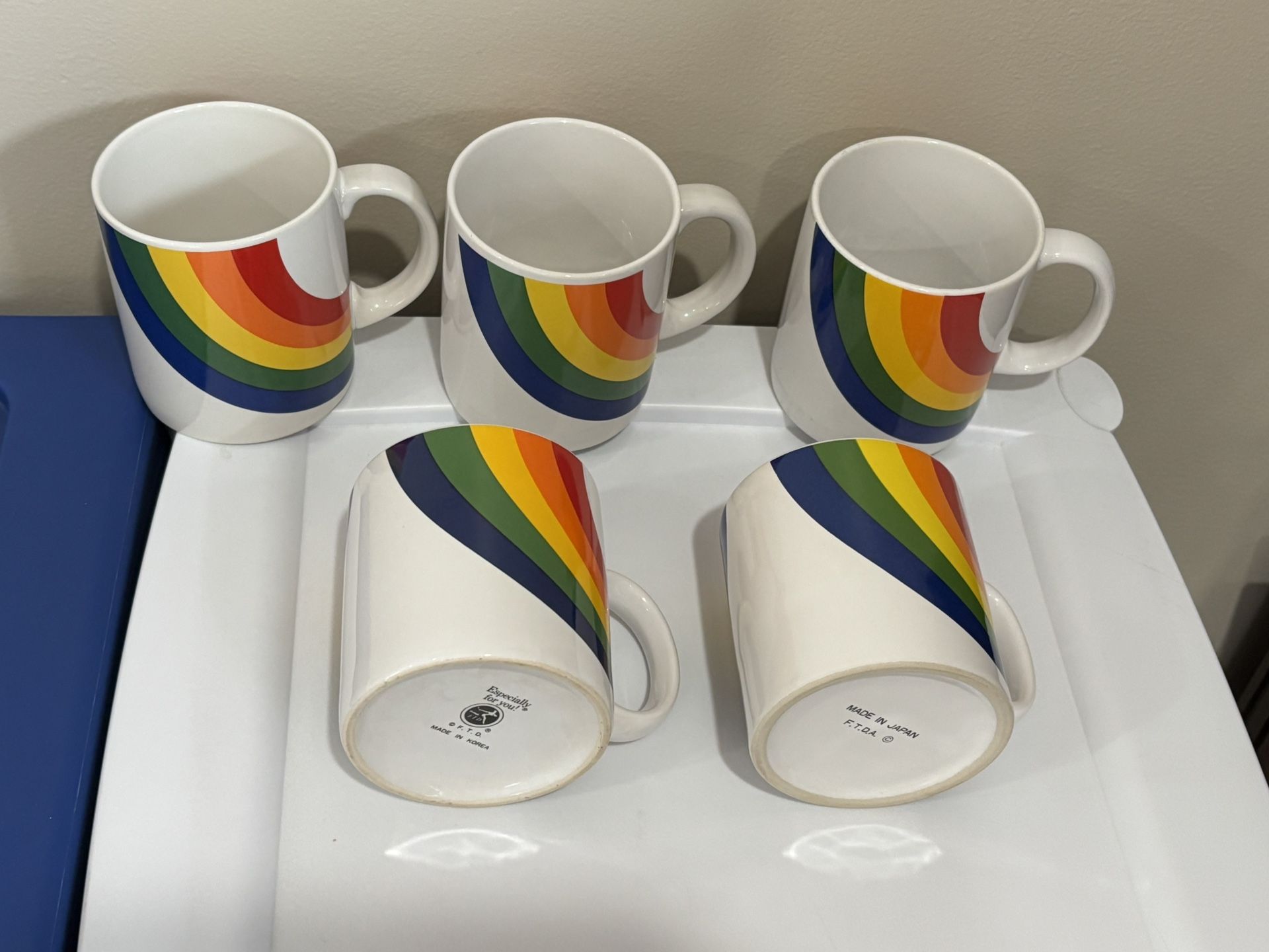 Vintage Rainbow Mug FTD Coffee Tea Mug Ceramic Korea 1980’s Set of 5, all in great to good condition Brighten up your mornings with this vibrant rainbow ceramic mug set. Perfect for adding a splash of color to your dining experience. Reliable MUNHALL PICKUP (Located 4 min from Waterfront)