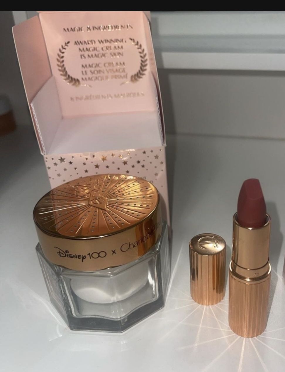 Comes with 2 products: Limited Edition Disney Charlotte tilbury magic cream and pillow talk lipstick __________________________________________________ Lipstick: Shade Pillow Talk Medium worth $35 Magic Cream: Full size 50ml worth $100 Total Value: $135