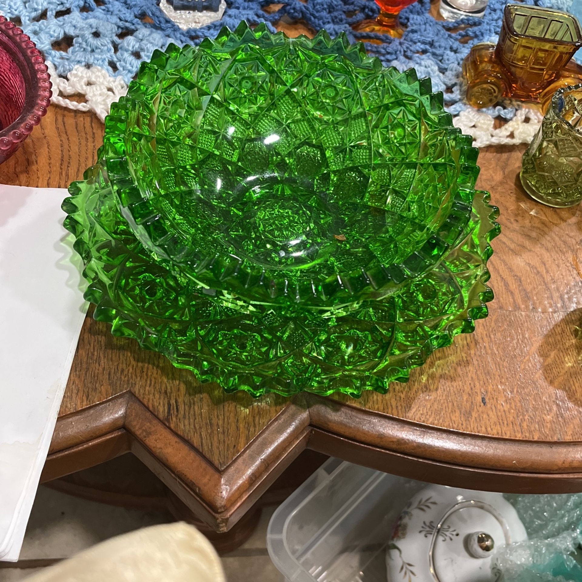 Very beautiful green glass to pieces there’s more if you need it It Has The Glass Bowl and a glass plate