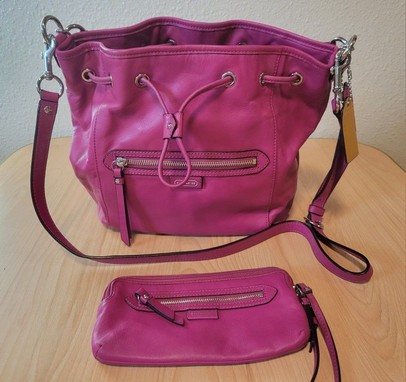 Authentic coach, has a matching wallet and removable longer strap. It does have some wear on one side