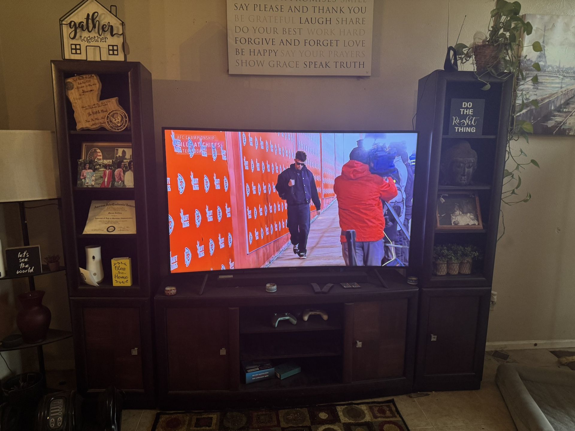 3 piece entertainment set. “TV decorations not included”. Great condition just dusty been sitting in storage for months.