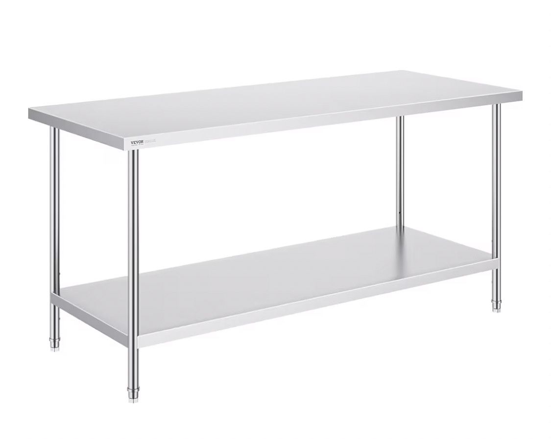 Stainless Steel Prep Table, 30 x 72 x 34 Inch, 920 lbs Load Capacity, Heavy Duty Metal Worktable with 3 Adjustable Height Levels, Commercial Workstation for Kitchen Garage Restaurant Backyard It needs cleaning, it's sitting in storage.