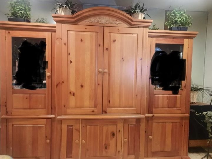 Heavy wooden china 3 pieces $200 OBO 28x76(2)ends 48x86 middle 23 front to back