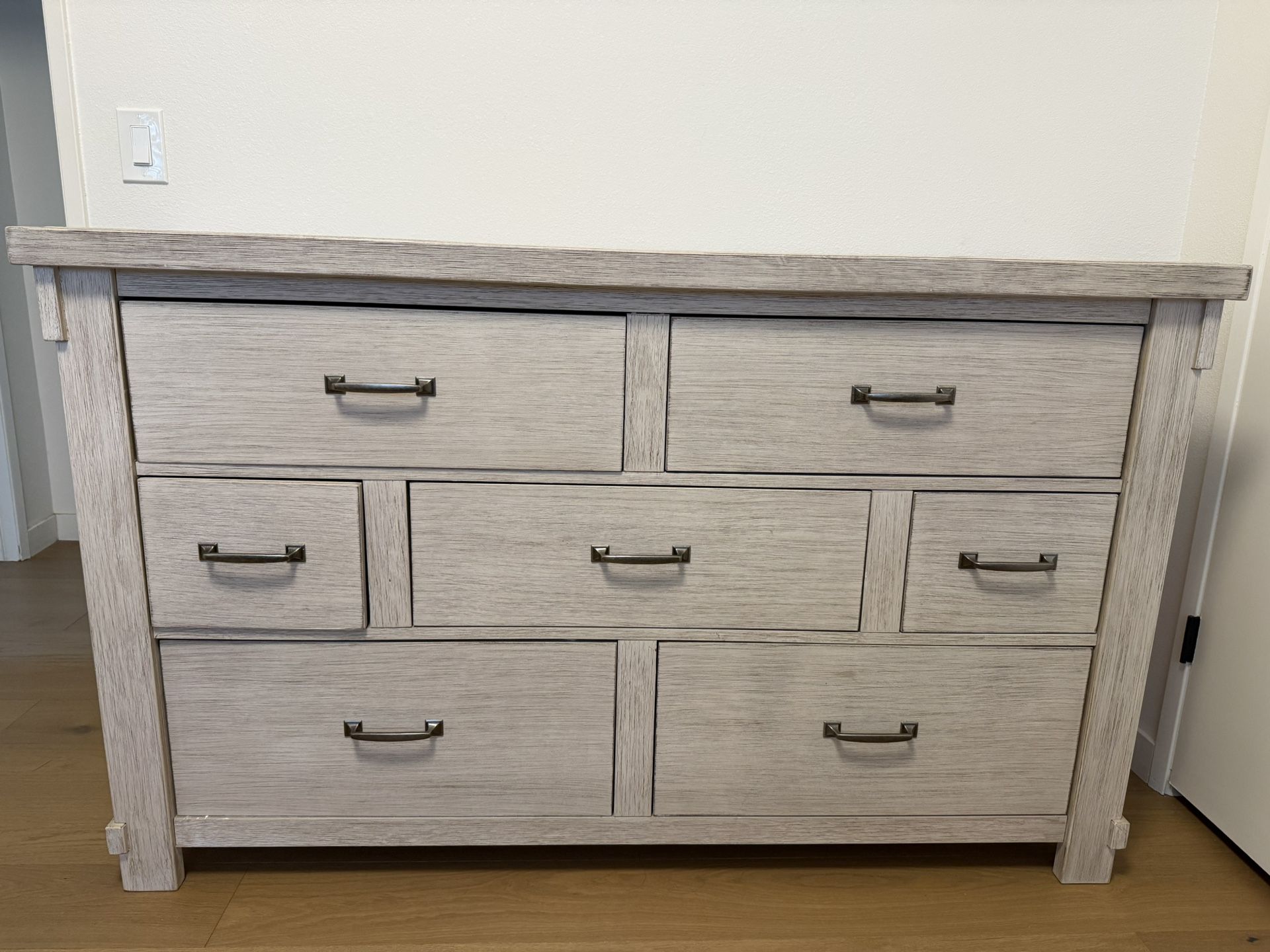 Large dresser (66″ W x 40″ H x 19″ D). Purchased new in 2021. Good condition with minor cosmetic scuffs on the top only (shown in photos). Drawers function well and piece is sturdy. Local pickup only in Thousand Oaks