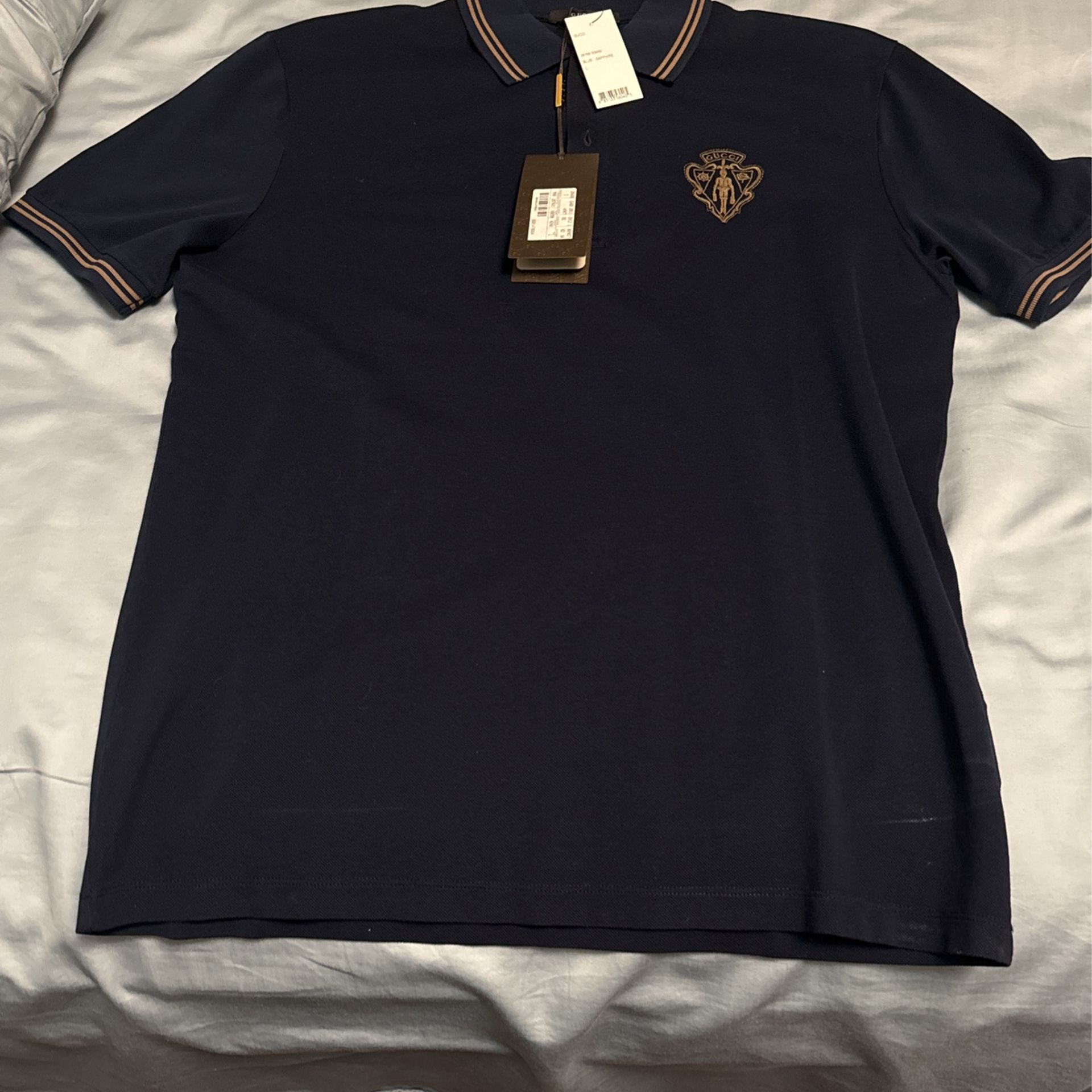 Gucci Polo New With Tags Size Large Blue Gold Trim