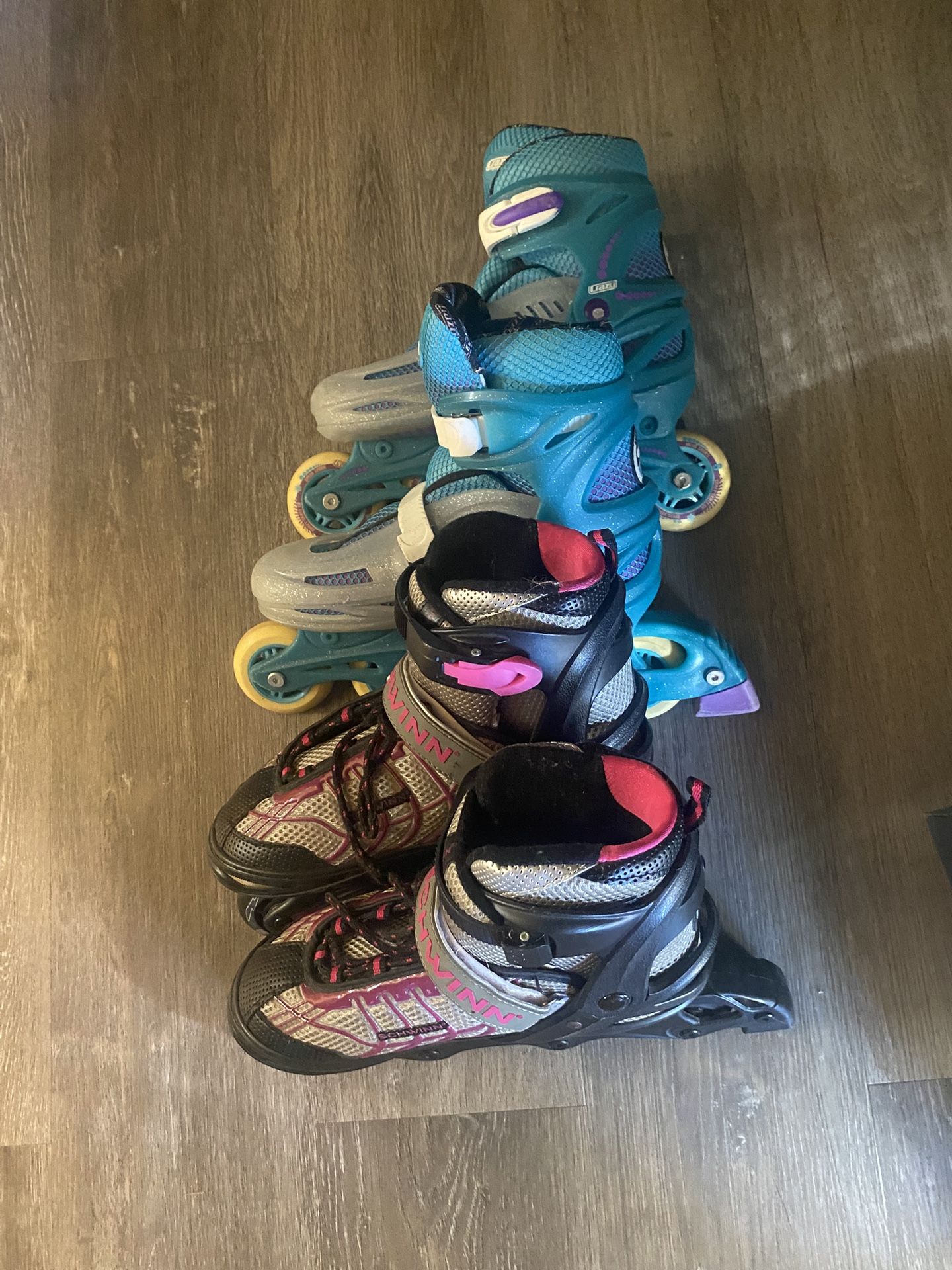 Can be sold separately Pink ones are “schwinn” $25 Blue ones are “crazy skates” $30