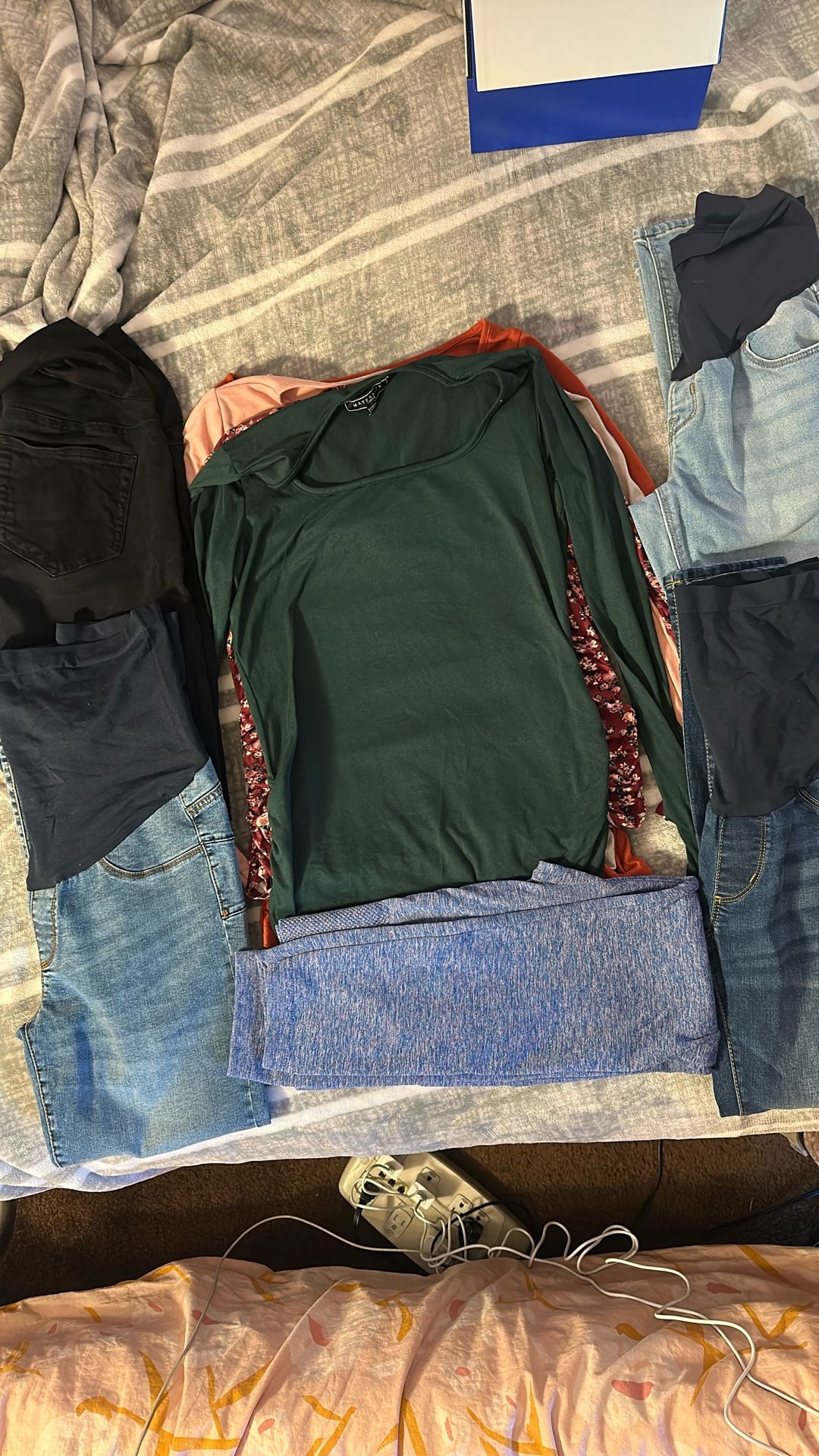 Maternity clothes Five long sleeves size small 4 jeans size small (size 4) Lightly used Ropa de maternidad 5 mangas largas talla small 4 Jeans size 4