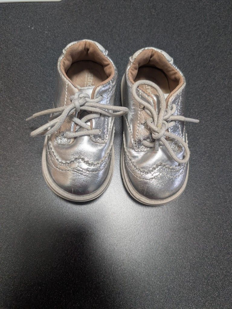 Stride Rite Shiny Silver Baby Shoes Leather Size 5