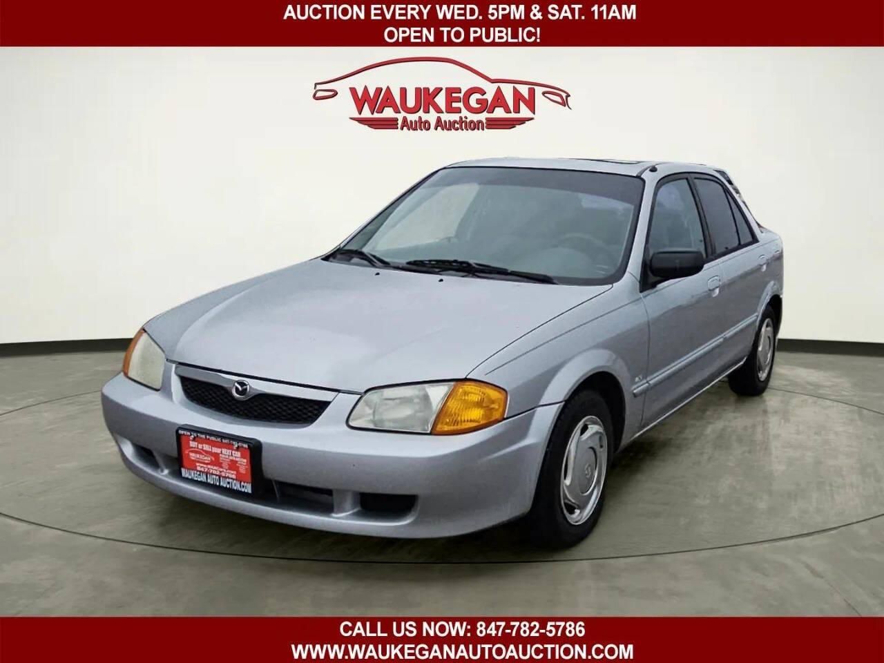 THE 2000 MAZDA PROTEGE LX 4DR SEDAN IS A COMPACT, RELIABLE, AND ECONOMICAL VEHICLE DESIGNED FOR DRIVERS WHO VALUE SIMPLE, PRACTICAL TRANSPORTATION WITHOUT SACRIFICING FUN TO DRIVE CHARACTER. WITH CLEAN, UNCLUTTERED STYLING, THE PROTEGE OFFERS A LOW, AERODYNAMIC PROFILE, A DISTINGUISHABLE GRILLE, AND SUBTLE BODY LINES THAT GIVE IT A CLASSIC, TIMELESS LOOK. AS AN LX TRIM, IT PROVIDES ESSENTIAL FEATURES WITH A FOCUS ON DEPENDABILITY AND VALUE. INSIDE, THE CABIN IS WELL‑LAID OUT WITH COMFORTABLE CLOTH SEATING, USER‑FRIENDLY CONTROLS, AND ENOUGH SPACE TO ACCOMMODATE FOUR ADULTS COMFORTABLY FOR DAILY COMMUTES OR SHORT ROAD TRIPS. THE SIMPLE DASH DESIGN AND CLEAR GAUGES MAKE IT EASY TO OPERATE, WHILE AMPLE HEADROOM AND LEGROOM CREATE A COMFORTABLE ENVIRONMENT FOR BOTH DRIVER AND PASSENGERS. THE TRUNK OFFERS PRACTICAL CARGO SPACE, MAKING GROCERY RUNS AND WEEKEND ERRANDS EFFORTLESS. TECHNOLOGY INCLUDES A STANDARD AM/FM STEREO, AIR CONDITIONING, POWER WINDOWS AND LOCKS, AND OPTIONAL FEATURES DEPENDING ON PACKAGE. SAFETY FEATURES AT THE TIME INCLUDED FRONT AIRBAGS AND ANTI‑LOCK BRAKES, PROVIDING BASIC PROTECTION FOR OCCUPANTS. UNDER THE HOOD, THE PROTEGE LX IS POWERED BY A FUEL‑EFFICIENT FOUR‑CYLINDER ENGINE PAIRED WITH A SMOOTH‑SHIFTING AUTOMATIC OR MANUAL TRANSMISSION, OFFERING PEPPY PERFORMANCE AND GREAT GAS MILEAGE, MAKING IT IDEAL FOR CITY COMMUTING AND HIGHWAY DRIVING. OVERALL, THE 2000 MAZDA PROTEGE LX 4DR SEDAN IS A DEPENDABLE, ECONOMICAL COMPACT CAR WITH A PRACTICAL DESIGN AND A FUN, ENGAGING FEEL. WE HAVE MANY GREATER DEALS ALONG WITH A GREAT SELECTION OF CARS AVAILABLE AT TRUE AFFORDABLE PRICES. WE BUY CARS FROM PRIVATE OWNERS AND BRING THEM INTO GETTING CASH. OUR FACETIME AND WHATSAPP VIDEO CHATS ARE AVAILABLE FOR VEHICLE-RELATED QUESTIONS AND INQUIRIES. PLEASE CALL US WITHIN BUSINESS HOURS. OPEN TO THE PUBLIC. MUST BE REGISTERED AT AUCTION TO BID. WAUKEGAN AUTO AUCTION IS NOT RESPONSIBLE FOR ERRORS IN THIS ADVERTISING. WAUKEGAN AUTO AUCTION VEHICLE LOCATION 2731 BELVIDERE ROAD, WAUKEGAN, IL, 60085 PH: 847.782.5786 WEB: WWW.WAACARS.COM DIRECTIONS FROM CHICAGO (WEST SUBURBS): TAKE I-294 NORTH AND CONTINUE TO I-94 WEST (NORTH-BOUND) TOWARD WAUKEGAN TO IL-120 EAST (BELVIDERE RD) USING EXIT 11A. TAKE EXIT 11A IL-120 EAST (BELVIDERE RD) 2.6 MILES TO WAUKEGAN AUTO AUCTION 2731 BELVIDERE RD WAUKEGAN IL 60085 ON RIGHT SIDE. DIRECTIONS FROM CHICAGO: TAKE I-90 WEST/ I-94 WEST (NORTH-BOUND) TO US-41 NORTH TOWARD WAUKEGAN. TAKE EXIT IL-120 EAST (BELVIDERE RD) 1 MILE TO WAUKEGAN AUTO AUCTION 2731 BELVIDERE RD WAUKEGAN IL 60085 ON RIGHT SIDE. DIRECTIONS FROM MILWAUKEE: TAKE I-43 SOUTH TO I-94 EAST (SOUTH-BOUND) TO US-41 SOUTH USING EXIT 1B TOWARD WAUKEGAN. CONTINUE ON US-41 AND EXIT IL-120 EAST (BELVIDERE RD) 1 MILE TO WAUKEGAN AUTO AUCTION 2731 BELVIDERE RD WAUKEGAN IL 60085 ON RIGHT SIDE. AUCTION DAYS AND TIMES: WEDNESDAY: AUCTION VIEWING TIME STARTS AT 4 PM AUCTION BIDDING TIME STARTS AT 6 PM SATURDAY: AUCTION VIEWING TIME STARTS AT 10 AM AUCTION BIDDING TIME STARTS AT 12 PM WAUKEGAN AUTO AUCTION RUNNING OVER 200+ VEHICLES EVERY WEEK!! BIDDING STARTS AT $500 ON MOST CARS!! YOU CAN BUY OR SELL YOUR VEHICLES AT WAUKEGAN AUTO AUCTION AND GET CASH FAST CALL US TODAY OR CHECK US OUT AT WWW.WAUKEGANAUTOAUCTION.COM DISCLAIMER: PRICES ON CARGURUS ARE FULL CASH PRICES AND DO NOT REQUIRE FINANCE OR TRADE. VEHICLE INFORMATION IS PROVIDED BY THE SELLER OR OTHER THIRD PARTIES. CARGURUS IS NOT RESPONSIVE TO THE ACCURACY OF SUCH INFORMATION.