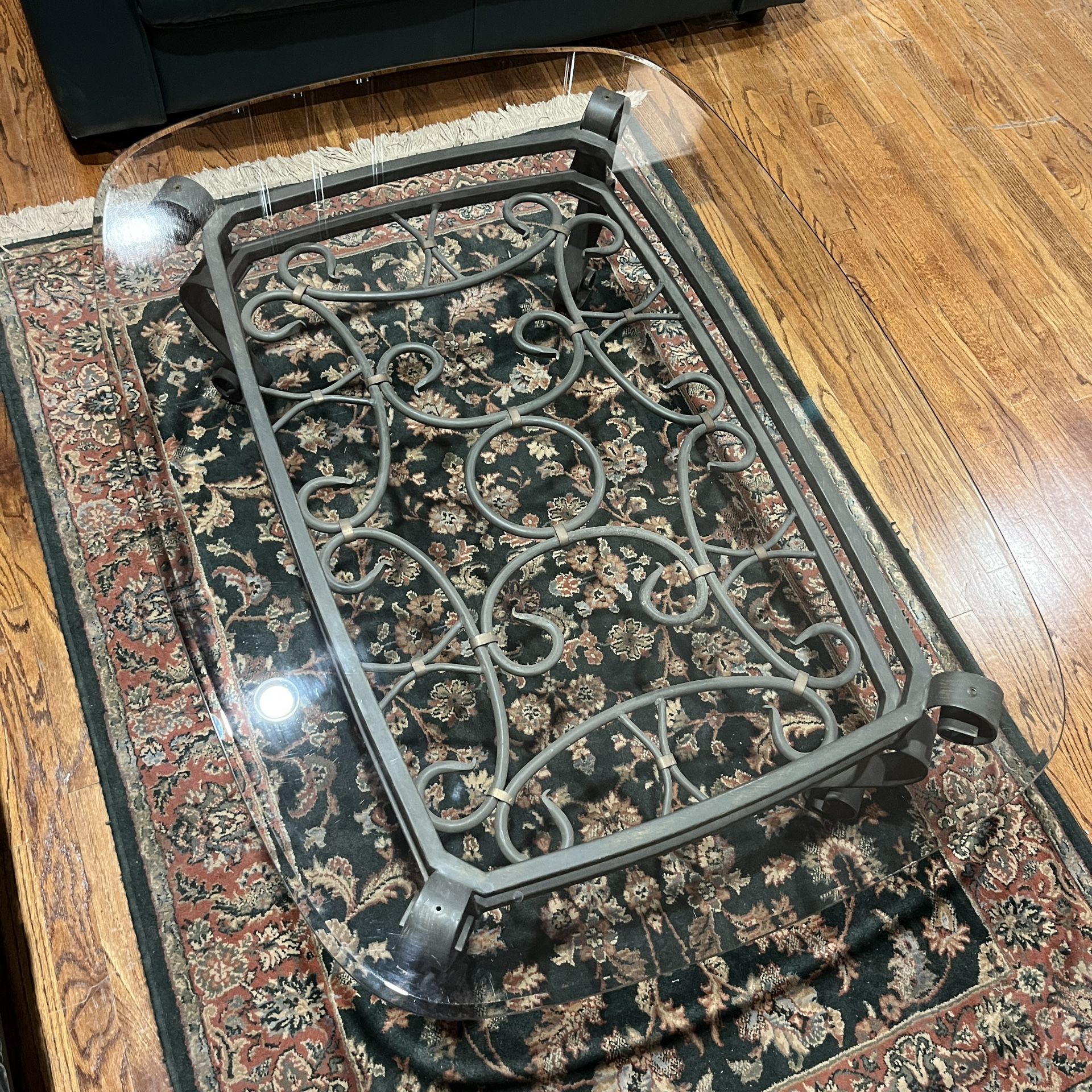 Glass Coffee Table With Decorative Metal Legs 48” Width 36” Length 17” Height