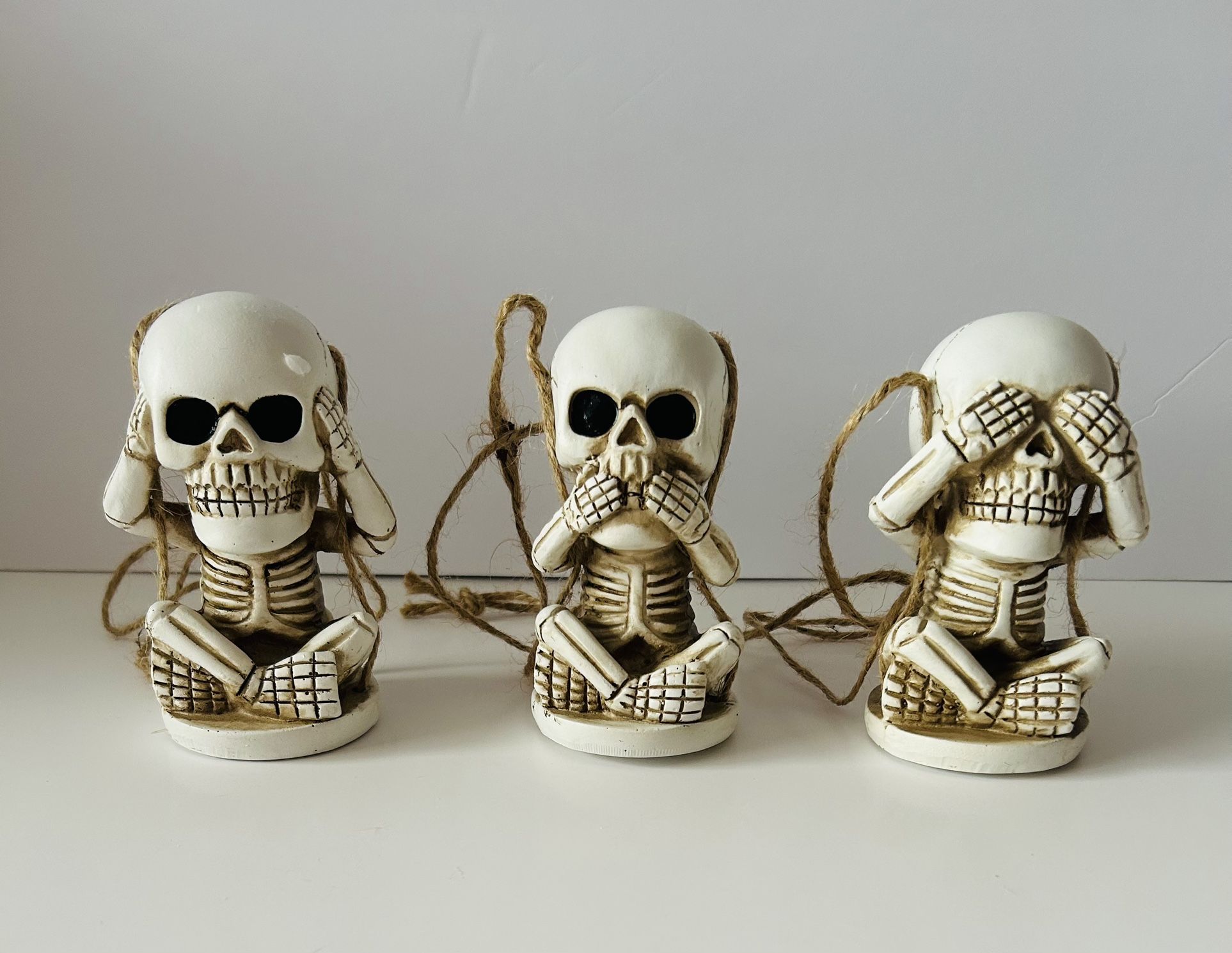 Halloween Skeleton mini Figurines Set of 3 See Speak Hear No Evil Gothic Resin