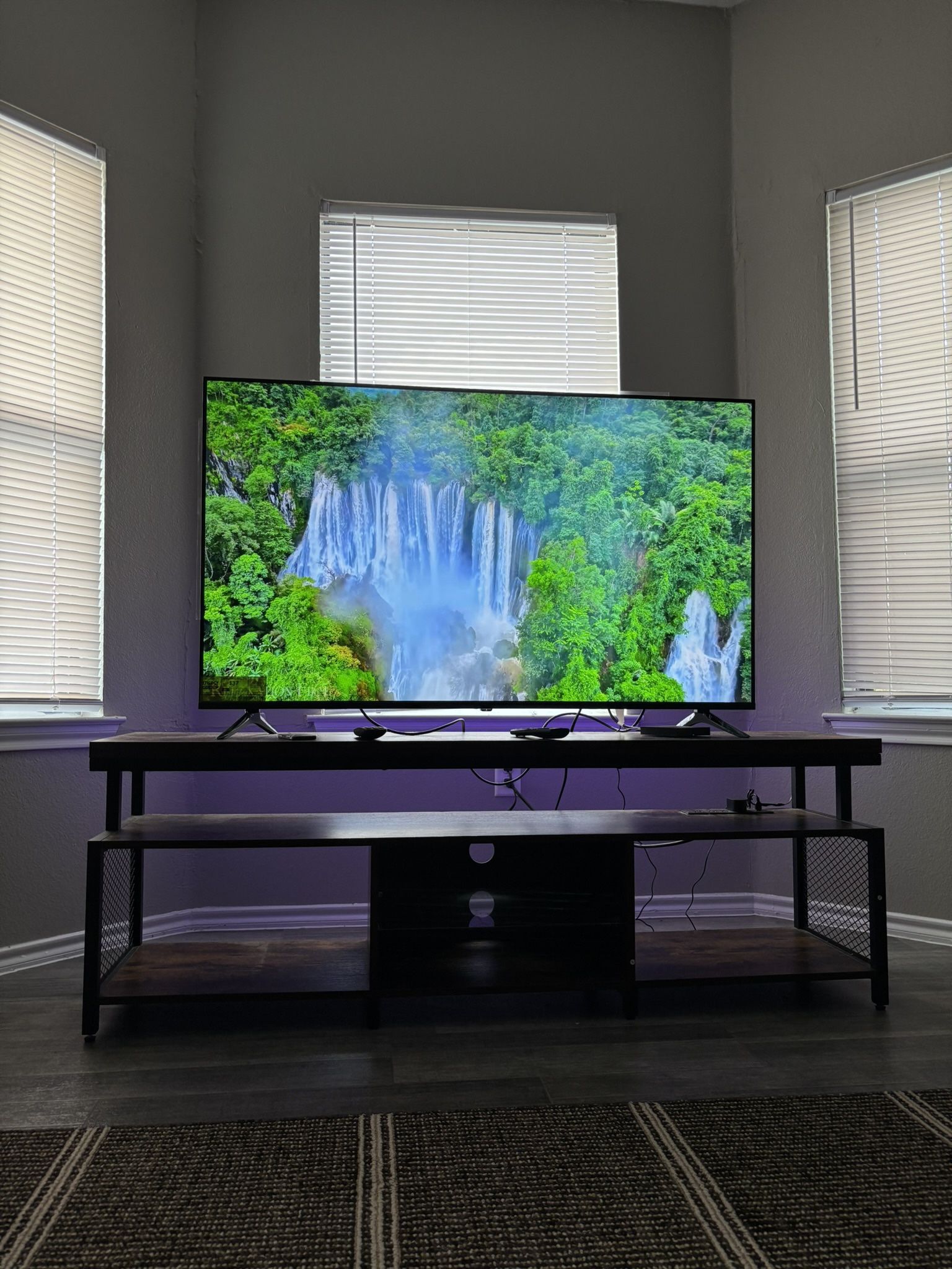55-inch 4k TV Smart LG A sofa with plugs and USB ports A TV stand with built in plugs and USB ports