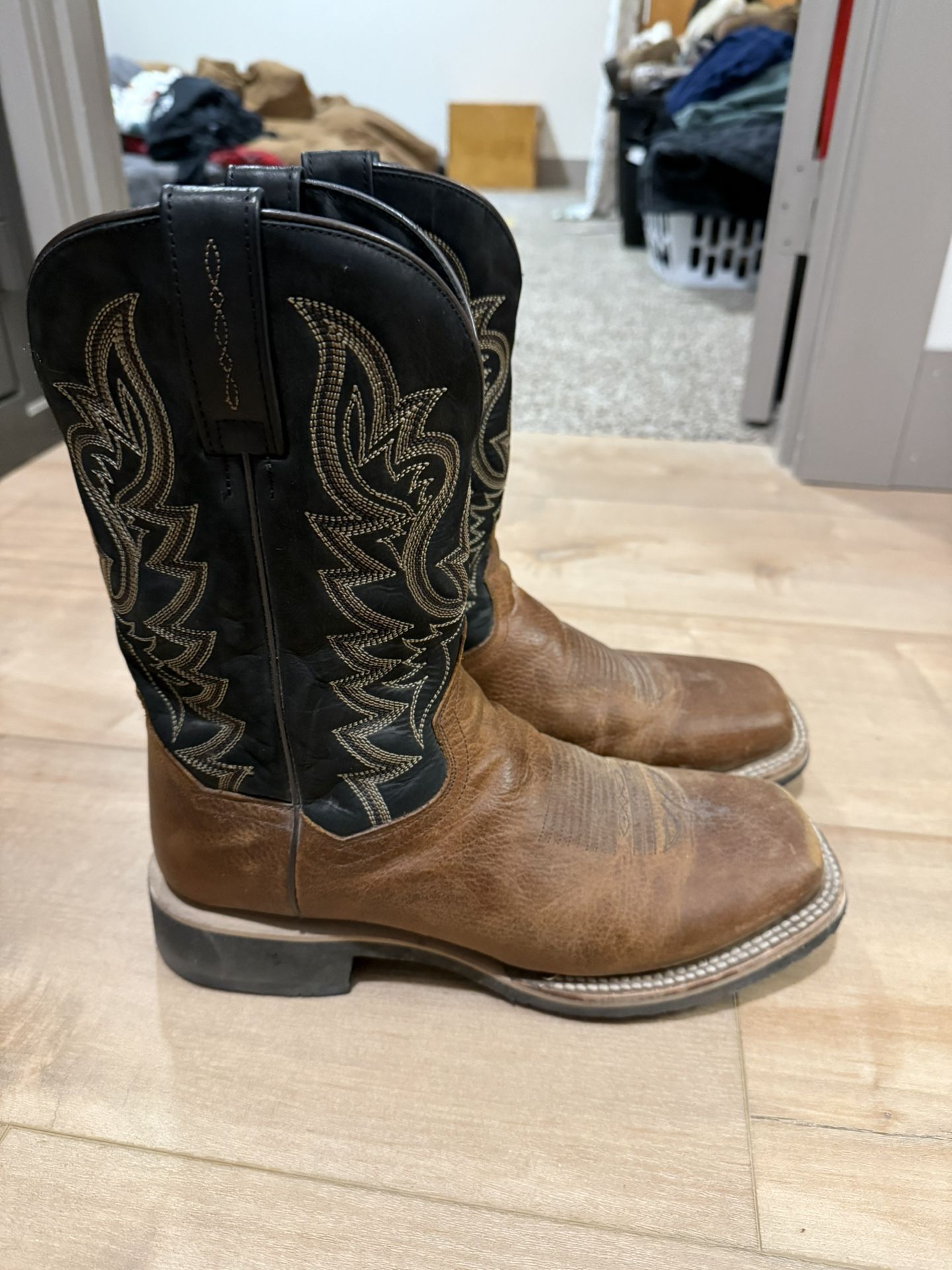 Great condition Mens 10.5 Wore a few times but not my work boots like new condition, bought this year. Good arch support real comfortable boots but I need half size down heel slips and cant return