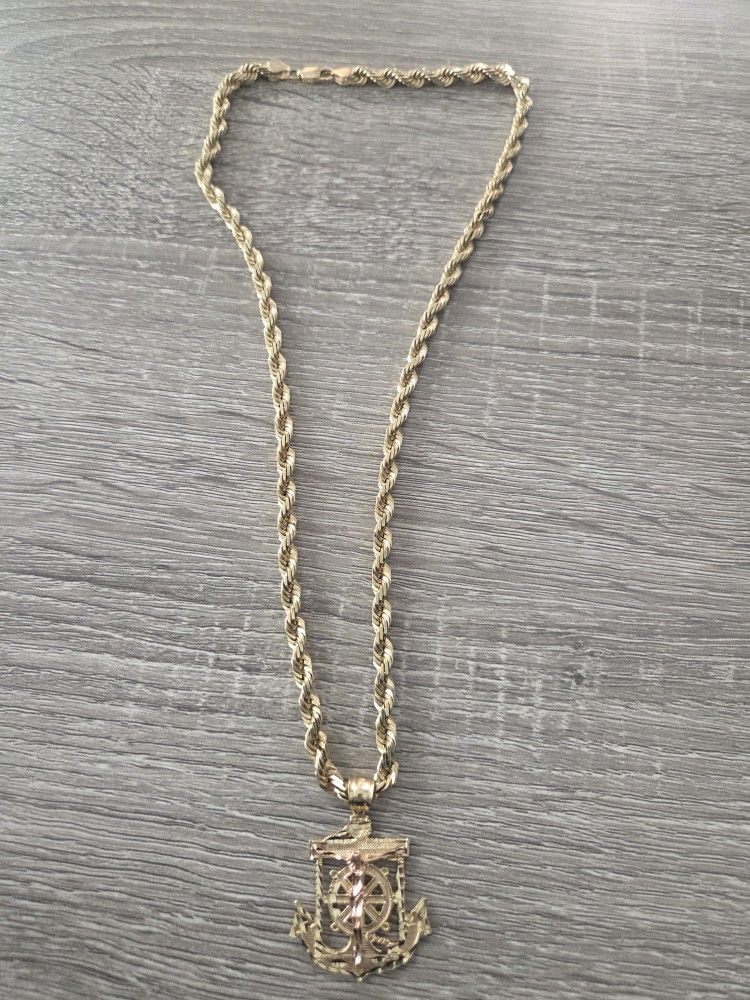 14k diamond cut rope chain with 14k anchor pendant two tone. 64.6 grams together.