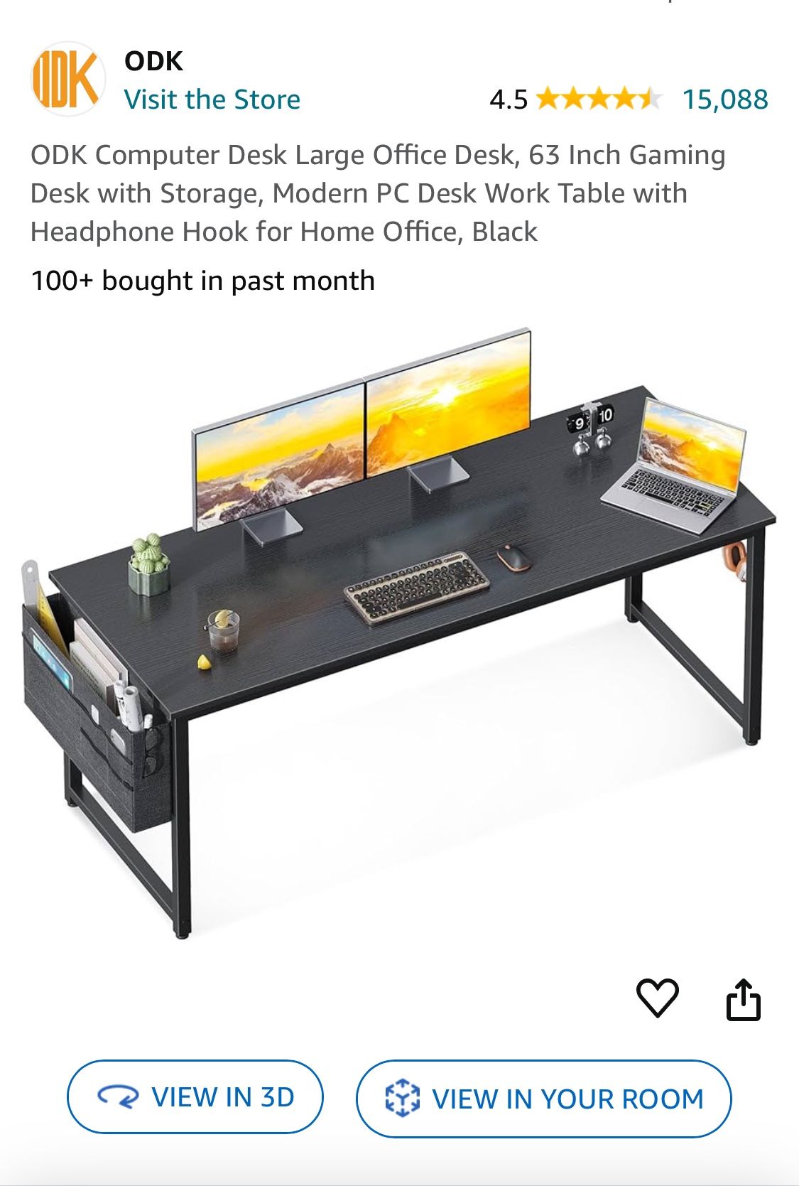 Computer Desk Large Black Office 63 Inch