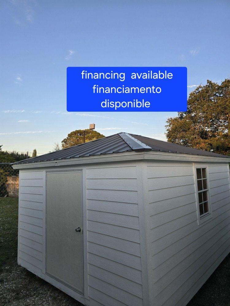 shed casita de patio 11x13 hardyboard with local delivery included. I'll take it to you. Hurricane rated. no water leaks. beautiful 4 pitch roof (hip roof). hardie board siding. door on 11 ft side. 1 window on 13ft side. built in shelves. FINANCING AVAILABLE !!!!