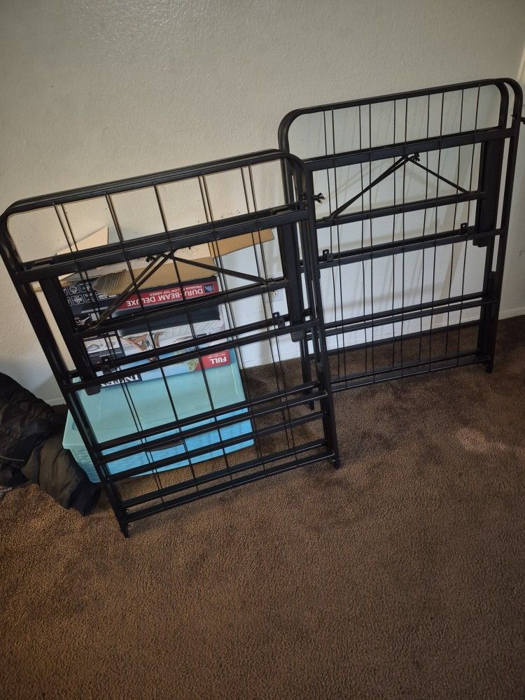 Metal Queen bed frame. Join 2 twin frames together or use as 2 beds.