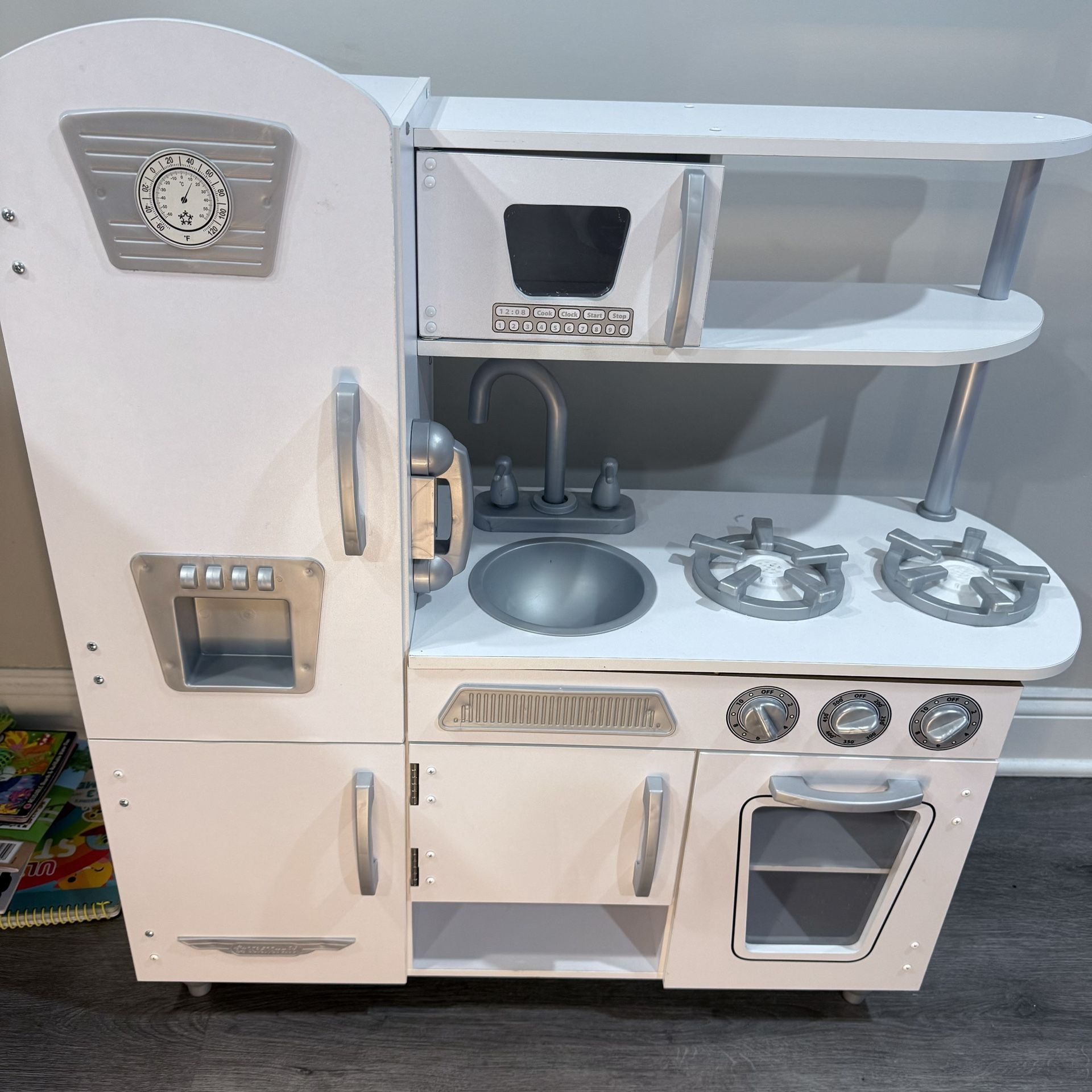 KidKraft Vintage Wooden Play Kitchen with Pretend Ice Maker and Play Phone, White. PERFECT CONDITION!