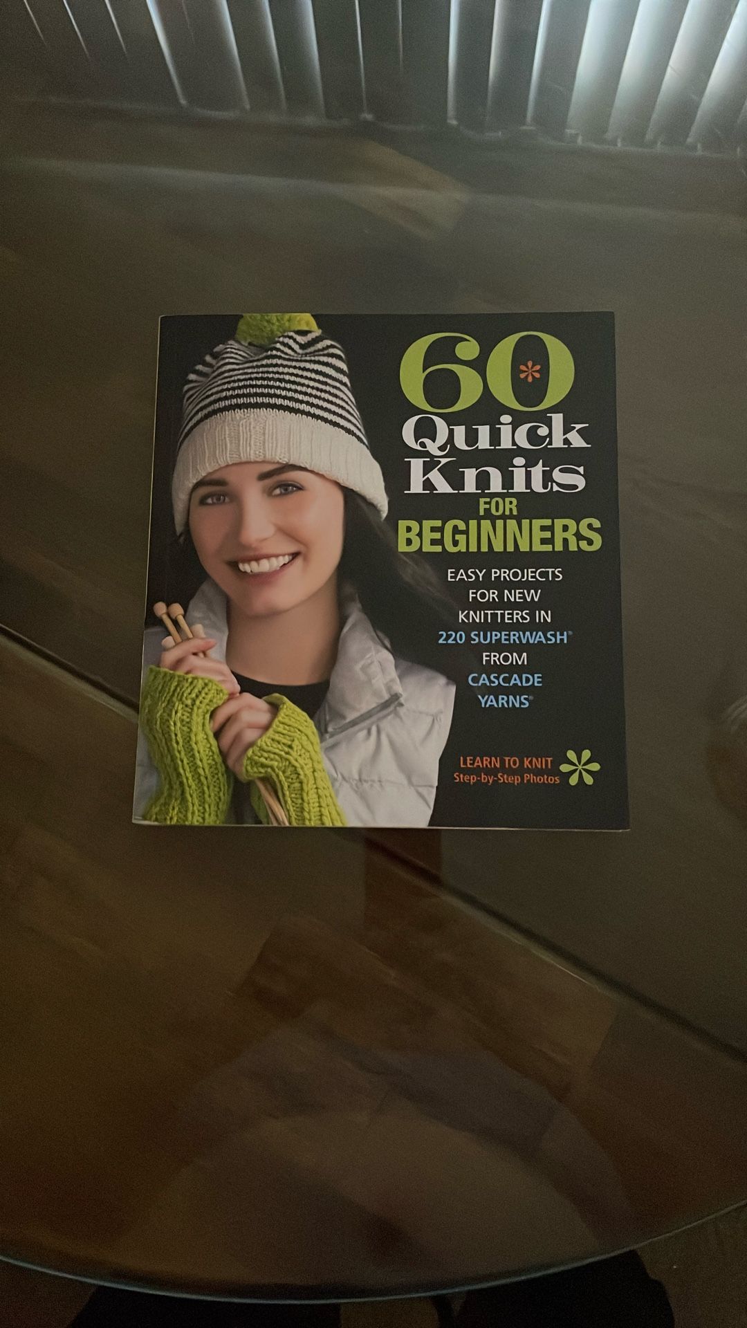 60 Quick Knits For Beginners. Easy projects for new knitters. Learn to knit step by step. Book is in good condition except for one loose page. Smoke and pet free home. Cash only.