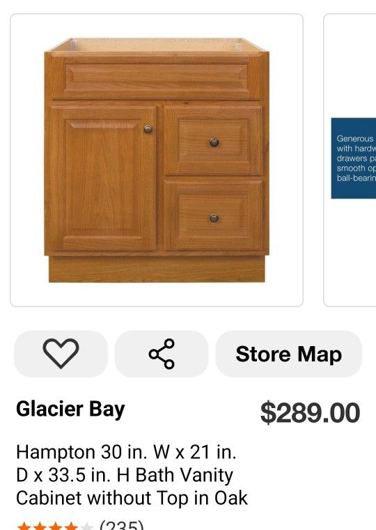 Glacier Bay Hampton 30 in. W x 21 in. D x 33.5 in. H Bath Vanity Cabinet without Top in Oak 3 AVAILABLE NEW $$200 EACH