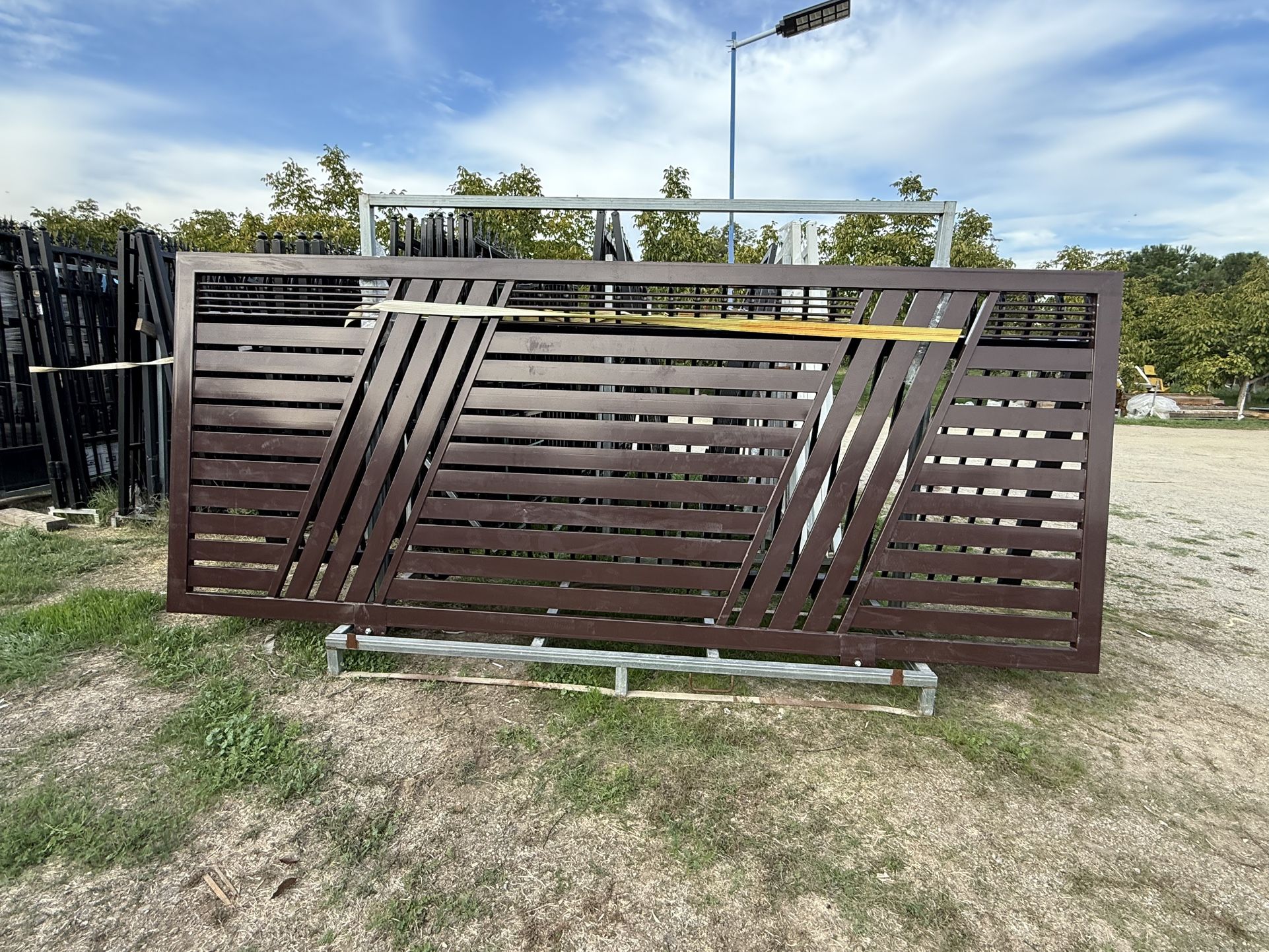Hablo español 14'x6' Heavy Duty Sliding Gate Brown in color See pictures (2) U POST 3”x3” x 8’7” L (2) V tracks 19’9” L (4) Rubber Rollers Very Heavy Gate. $2000 Free Delivery available in this Gate Only in Stockton/Linden/Manteca/Lodi. Delivery fee to any other City.