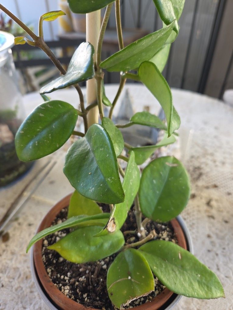 Super healthy with lots of pups growing, lots of new growth about 2 ft tall. Checkout other hoyas I have. I carry 100 different types of Hoyas. This comes in a clay pot.