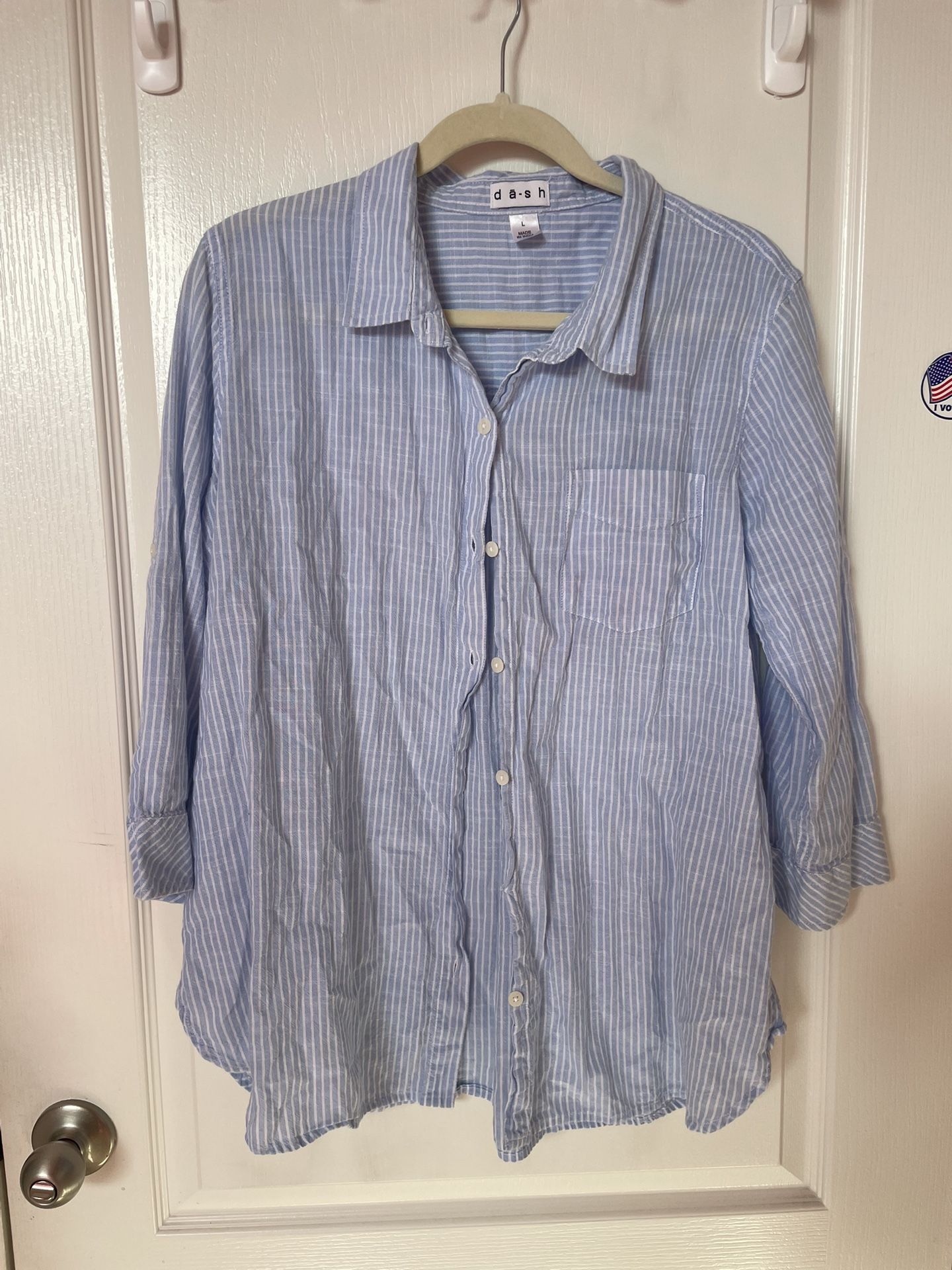 Dash 3/4 sleeve button up blue and white striped top size women’s L in excellent condition