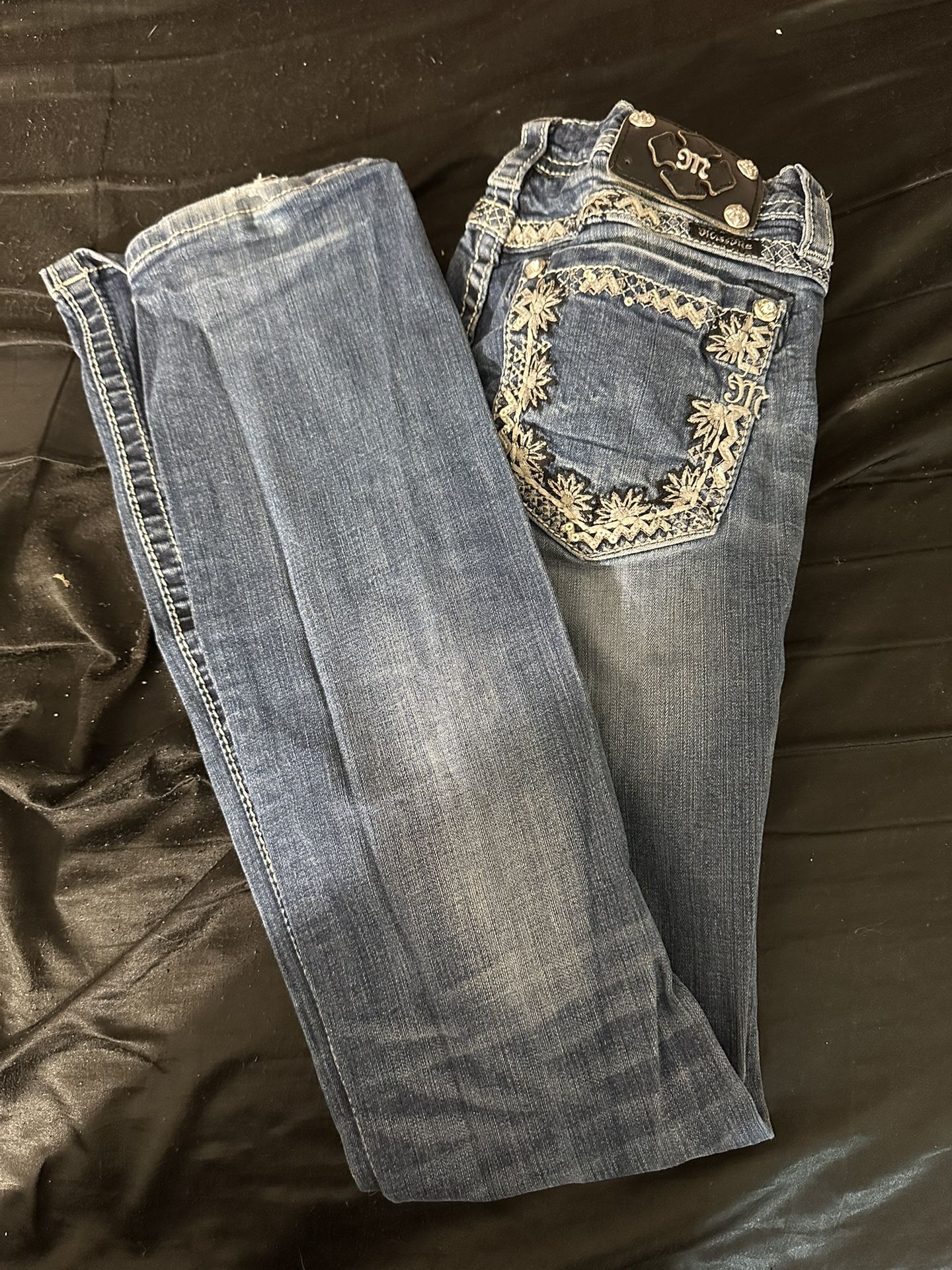 Authentic Miss Me jeans Low rise / flare / rhinestone pockets Y2K early 2000s style Measurements in pics Cash pickup