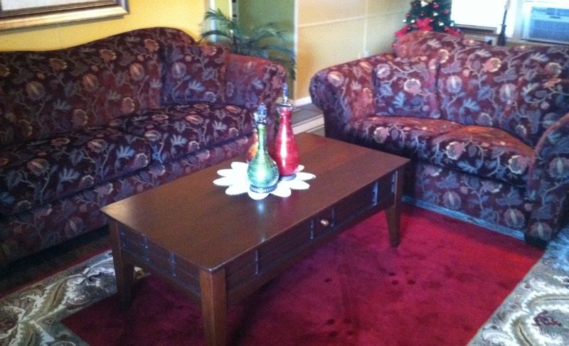 Have this set of living room for sale in a new conditions, floral dark burgundy color. Real wood big coffe table, a 7 by 8 beautiful dark red rug like new! Located on Sw Ocala between hwy 40 & 41 close to dunnellon.