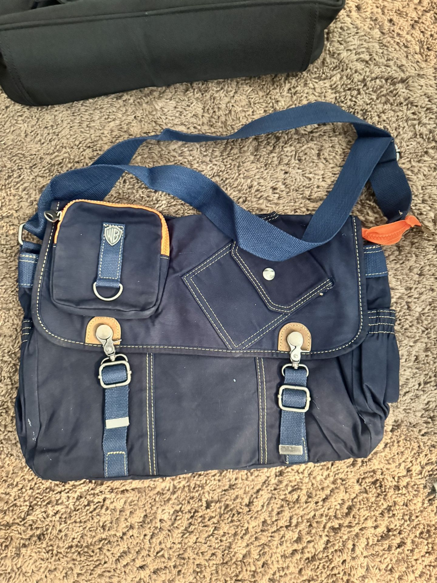 Denim travel bag for laptop or other travel needs Lots of pockets New