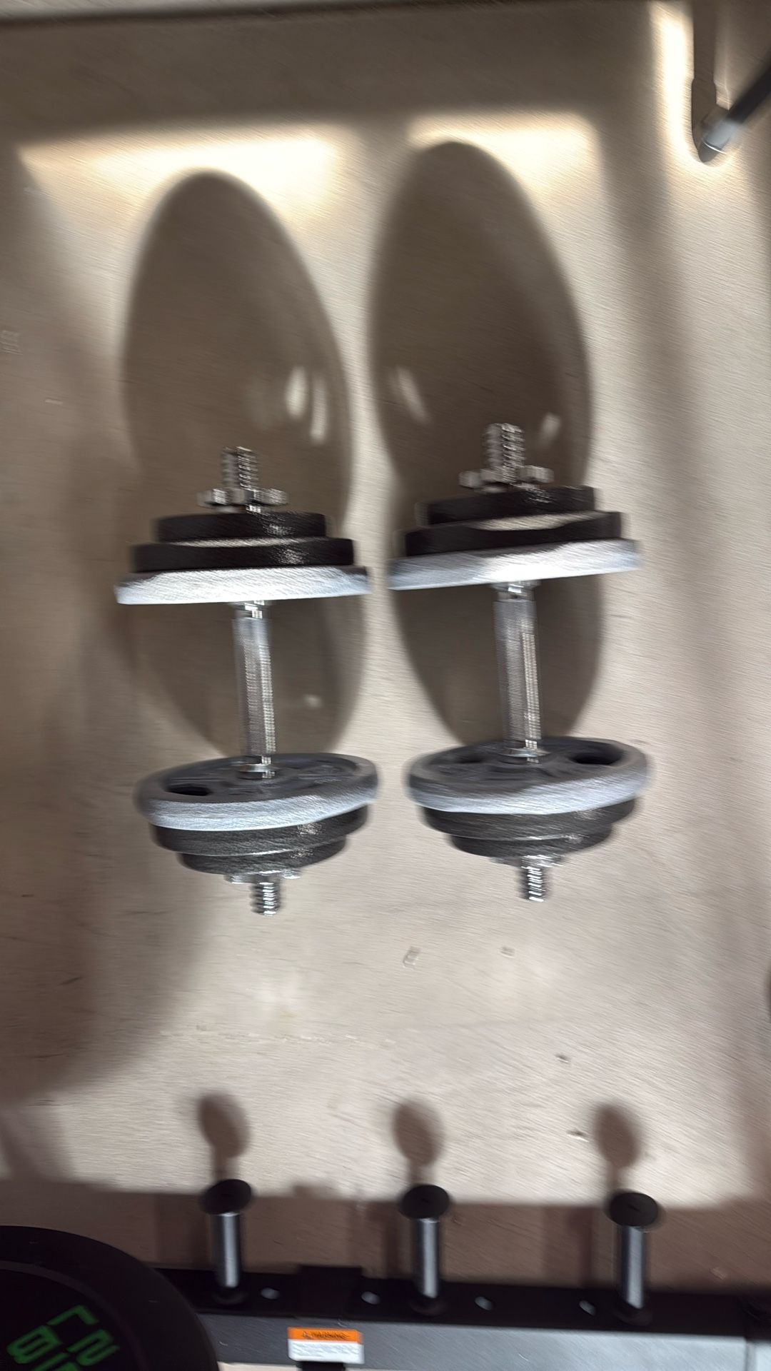 Adjustable Dumbbells. 8, 5 Pound Plates, Four, 3 Pound Plates.