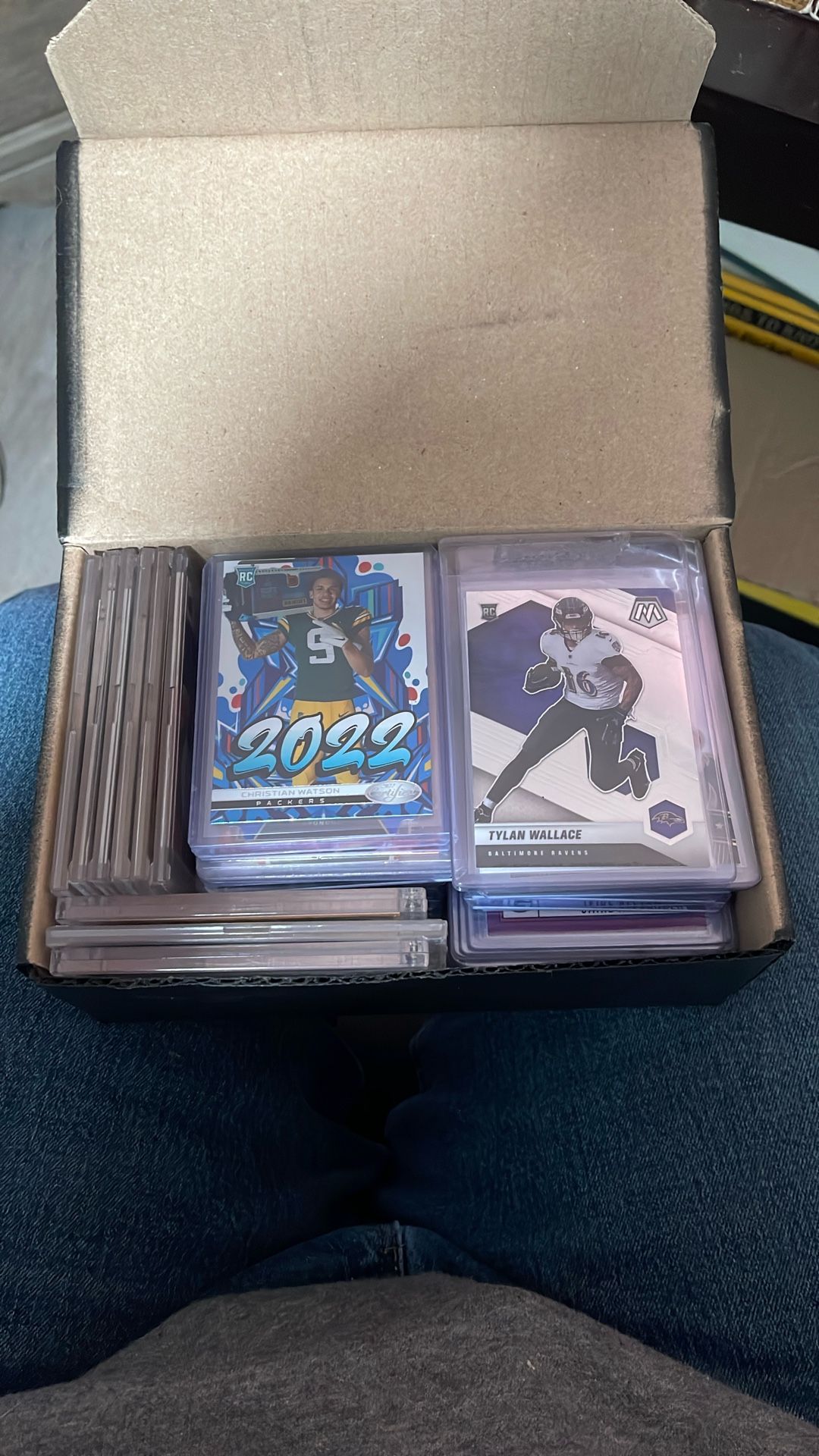 Lots of different cards all sleeved with hard topper there is a mixture of football and basketball with autographs numbered and relics