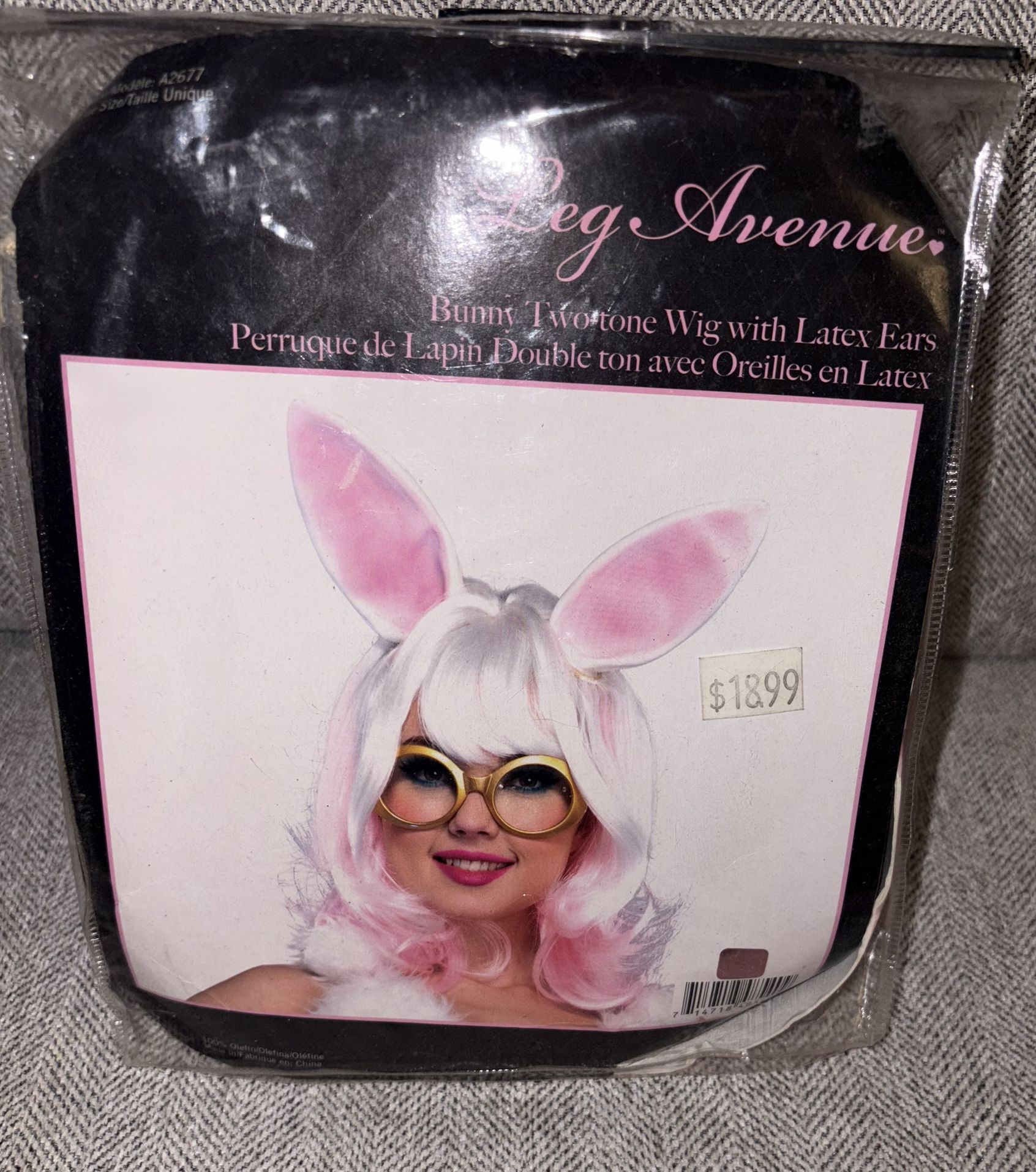 Bunny Wig Halloween Costume Accessory Preowned by Leg Avenue This is a white, straight-haired wig designed for women looking to complete their Halloween costume. This one-size wig is perfect for adding a whimsical touch to any Halloween theme. Great for a last minute costume theme!