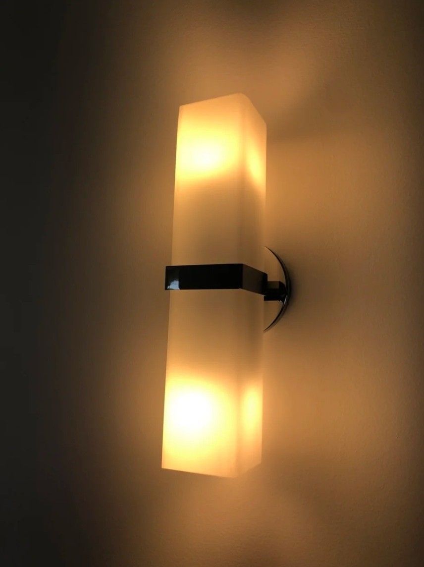 2 Elegant wall sconces with a warm glow. Damp location safe. No bulbs included. New in box.
