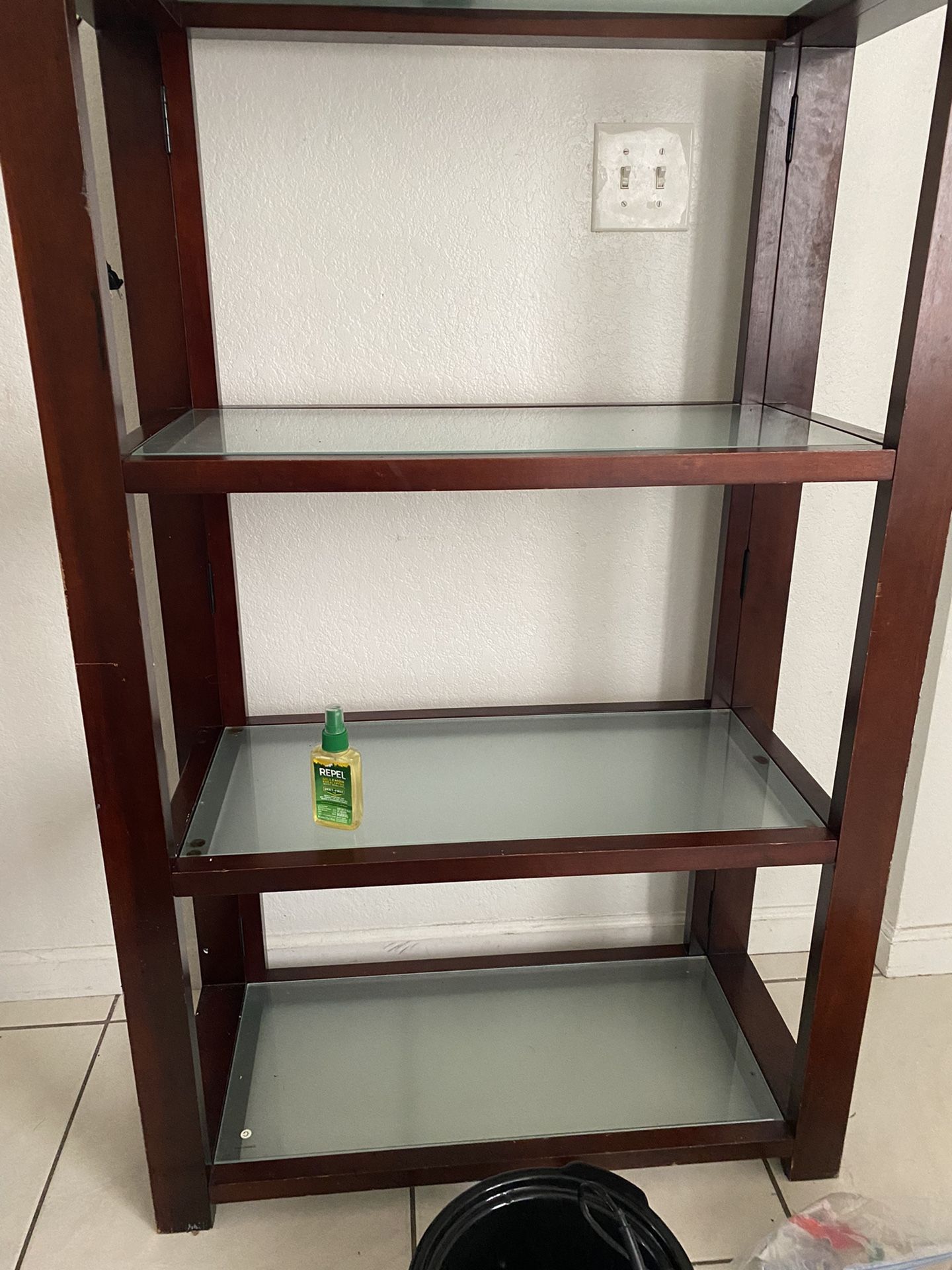 A beautiful solid wooden shelf with glass shelves must go asap. $30 obo