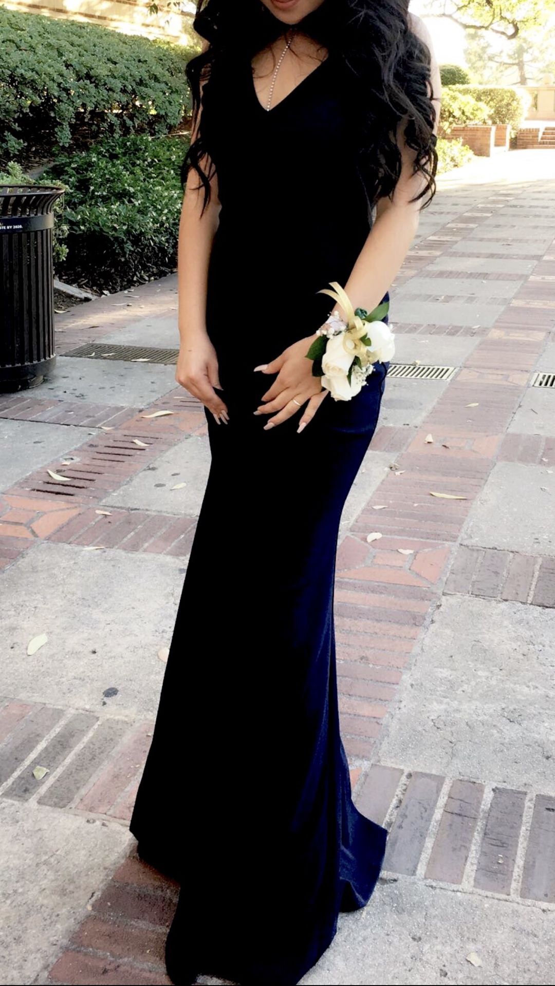 navy long a-line dress from prom girl only worn once for my prom. great quality and thick material. it stretches a bit as well! i bought it for $170 selling for $100 size: small