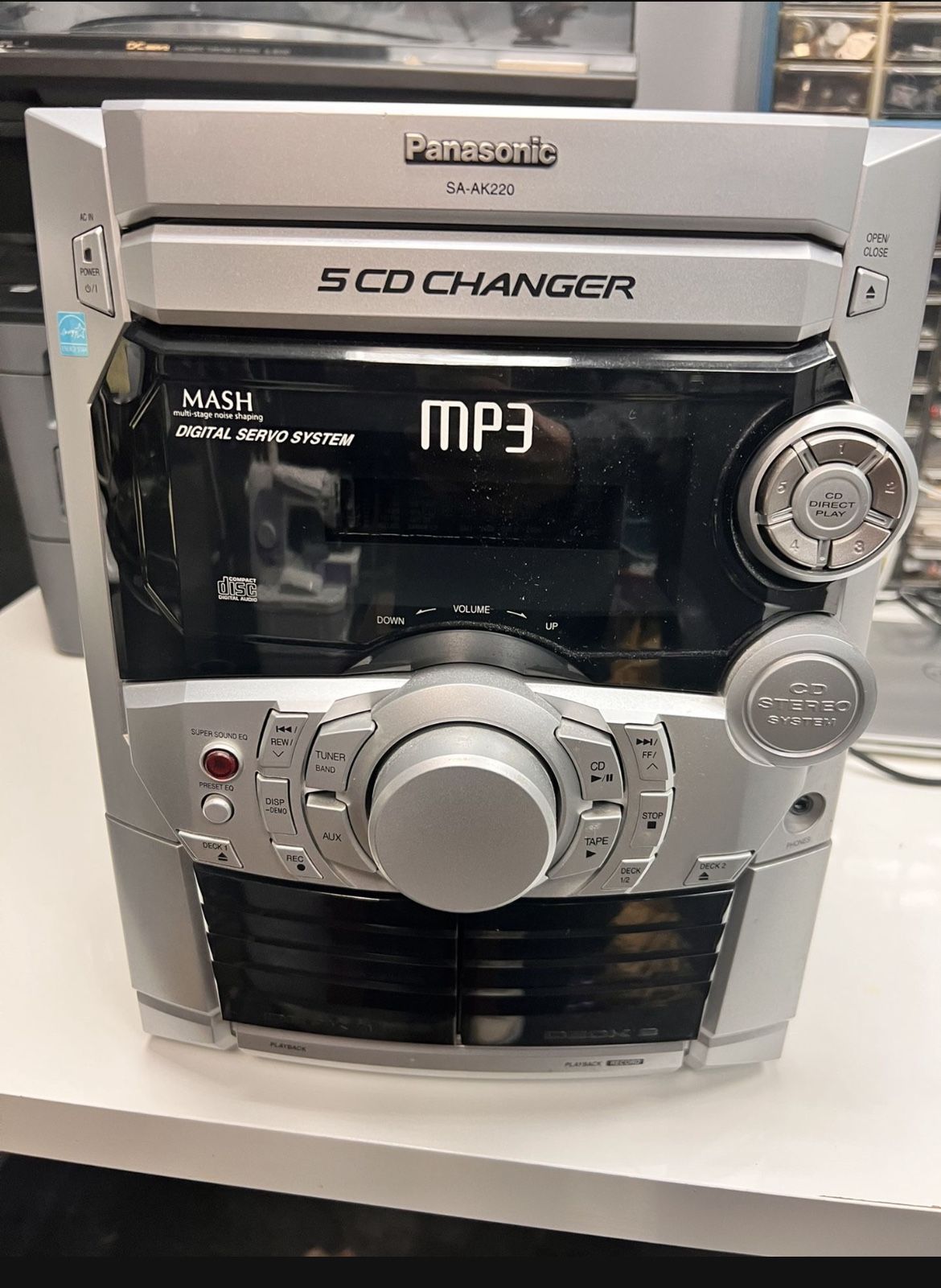 Panasonic 5 cd changer, with two tape players. All the buttons are on it and working fine. No damage. No speakers . Pre owned. Cash only pick up only from Glendale, CA PLEASE NOTE THAT GEAR ON THE CD CHANGER IS NOT WORKING SO IT IS NOT CHANGING CD’S . IT ONLY PLAYS 1 CD !
