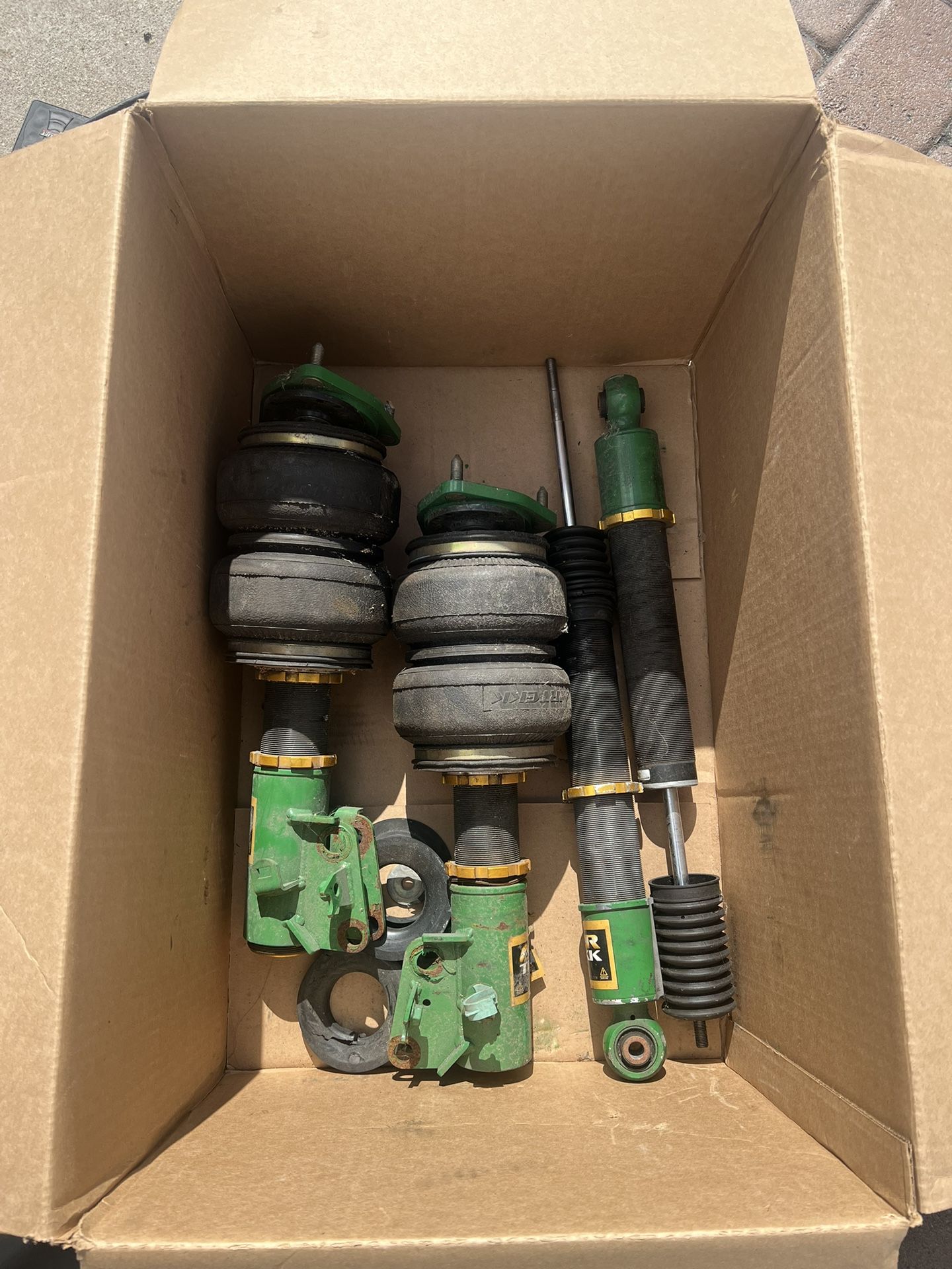 Airtekk air struts for a 8th gen civic, can also fit 9th gens used but in good condition, bags have no slits or damages has adjustable camber plates retails for $1500 brand new $600 obo