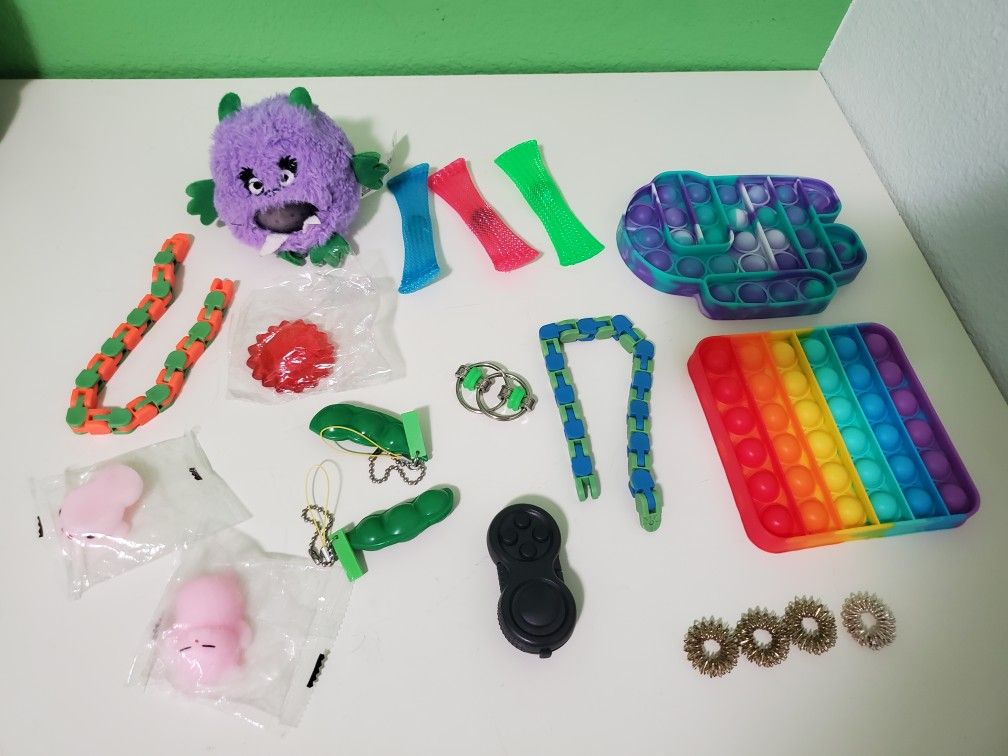 Perfect for kids with ADHD or the ones who need to keep their hands busy. Collection of various fidget toys including pop-its, stress balls, and more. Condition: Excellent Non-smoking and pet free house Pick up and cash only Thank you
