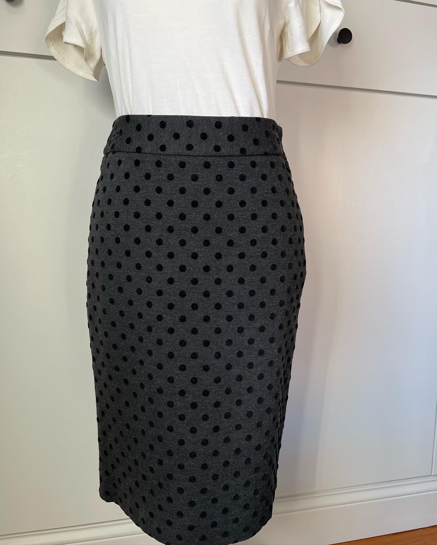 WHBM Gray & Black Polka Dot Pencil Skirt Size 0. Polka dots are a velvety texture Lined Back slit