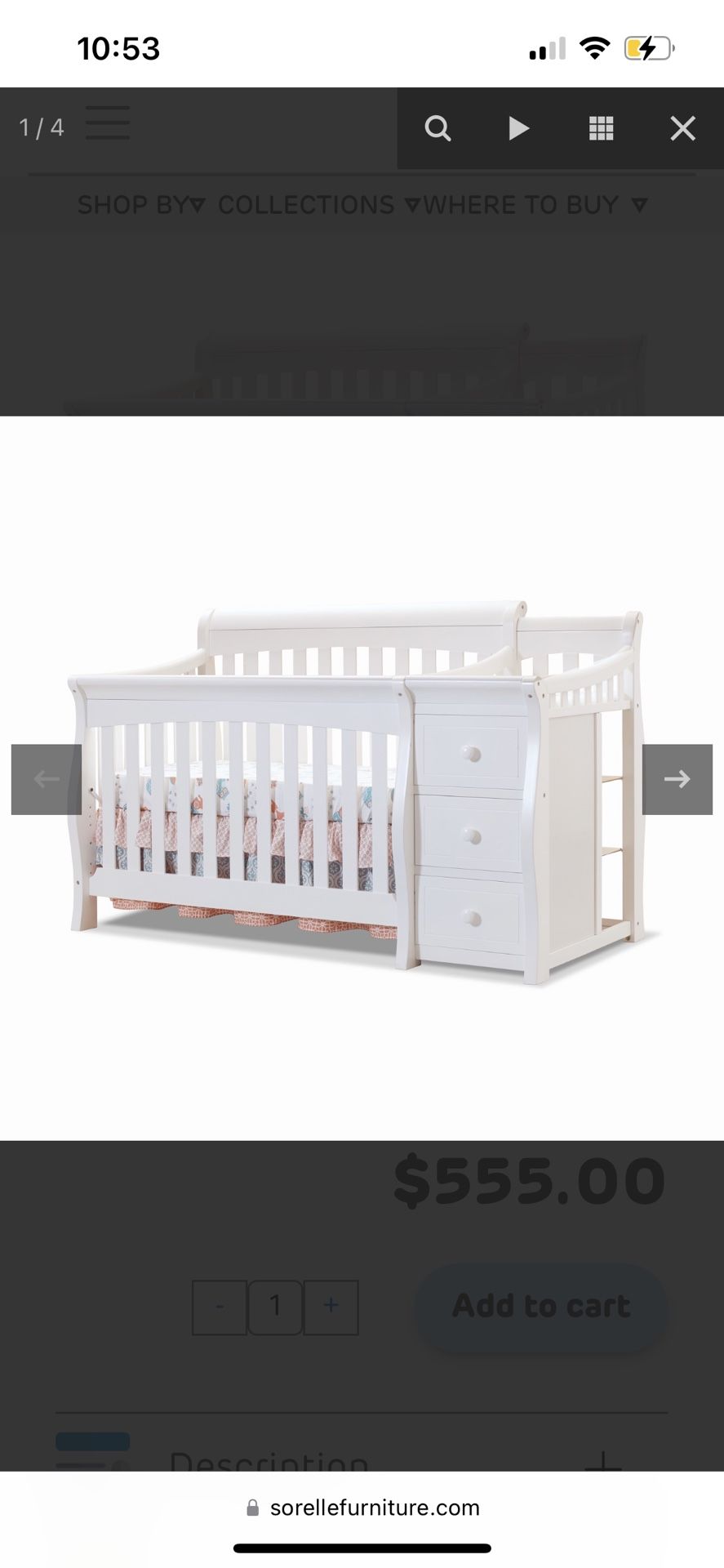 Sorelle Princeton Tuscany crib and changing table in white. Used has a few small scuffs. Pretty much disassembled except for drawers. mattress included if you want it. Still have original assembly instructions.