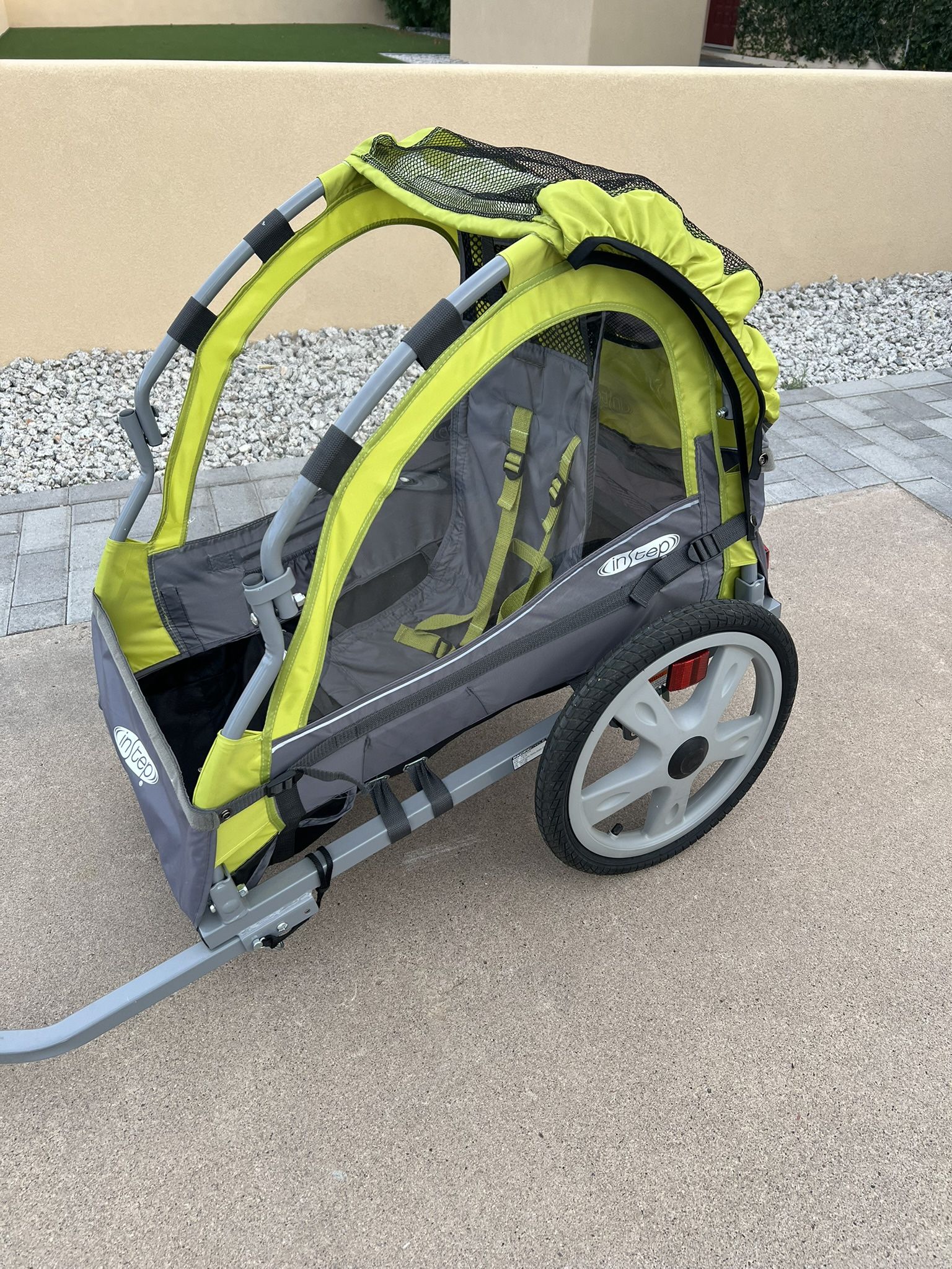 In green/gray — perfect for taking your little one along on bike rides! Gently used and still in good working condition. Brand: InStep Model: Sync Single Trailer Color: Green & Gray Designed to attach easily to your bike Comfortable seating and safety features for your child Great for family rides, errands, and outdoor fun Condition: • Used but well maintained • No major damage • Clean fabric and frame • Tires and hitch in good working order Perfect if you want a reliable bike trailer without paying full price. Great deal! Local pickup. Message me with questions or to see it!