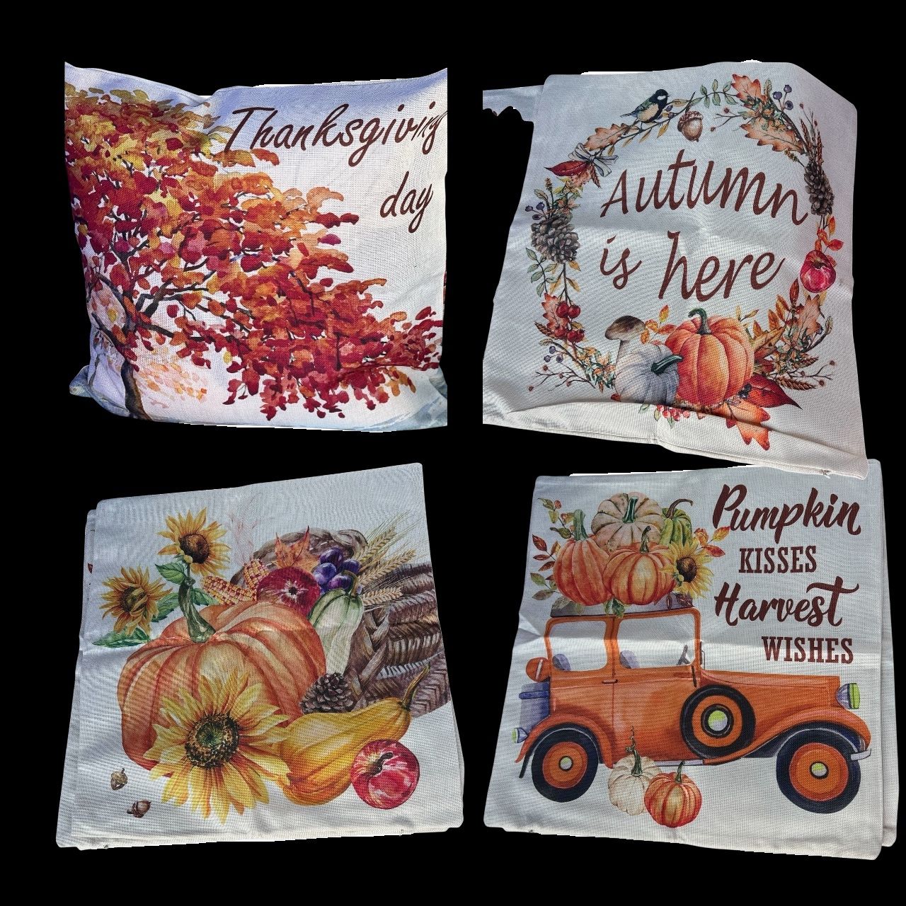 Thanksgiving Throw Pillow Covers with Seasonal Fall Quotes, 4 Autumn Designs,
