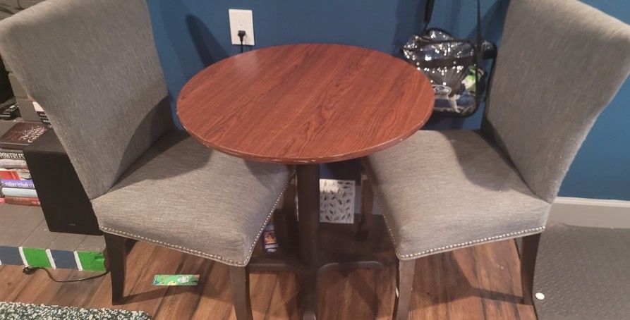 Well loved table with 2 upholstered chairs. Pet and smoke free house. You pick up.