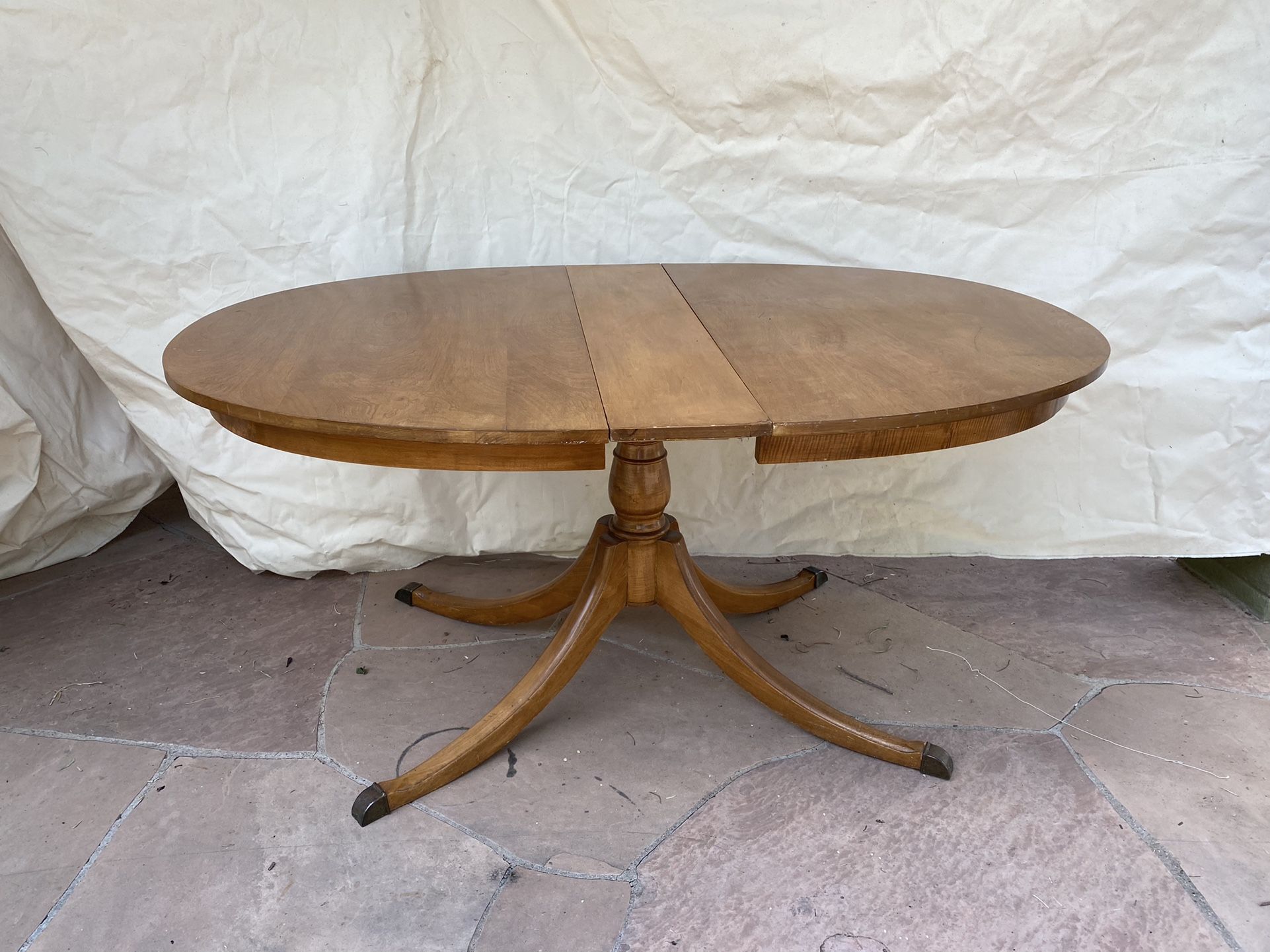 •Antique Oval Oak Table with one leaf. Table feet have brass on them. •Excellent condition. •Sign of ring from glass on one spot and small dot stain in another spot (see pictures) but amazing condition for its age. •Dimensions: 53x40” W/o leaf, Leaf is 8 1/4”, Height 29.5”
