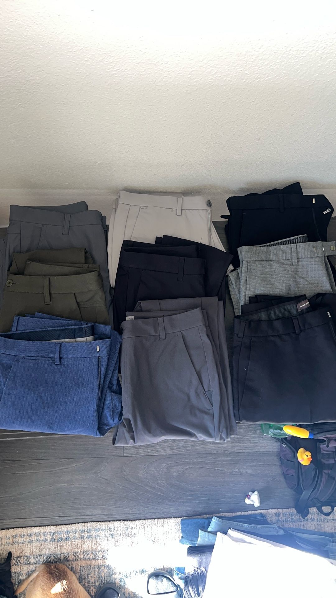 Selling a full collection of premium men’s pants — a mix of tech, business casual, and modern dress styles. Brands included: • Lululemon • BYLT (x2) • VRST • Express • Calvin Klein • Banana Republic • Tommy Hilfiger • Dockers All in excellent condition — no stains, holes, or fading. Freshly washed, clean, and ready to wear. Sizes: 30-34 waist, 30–32 length Perfect for work, date nights, or business casual outfits. Pricing: • Lululemon (black tech pant) — $40 • BYLT (tech pant)2x — $25 each • VRST (gray performance pant) — $25 • Express (navy stretch dress pant) — $20 • Calvin Klein (light gray slim fit) — $20 • Banana Republic (light plaid slim dress pant) — $18 • Tommy Hilfiger (black flat-front dress pant) — $18 • Dockers (black classic fit) — $12 Take all 9 pairs for $150 (original retail well over $400+). OBO!!! Photos for sizing go from left to right top to bottom. Phone number is 9255952937 if you want full pictures of individual shirts!