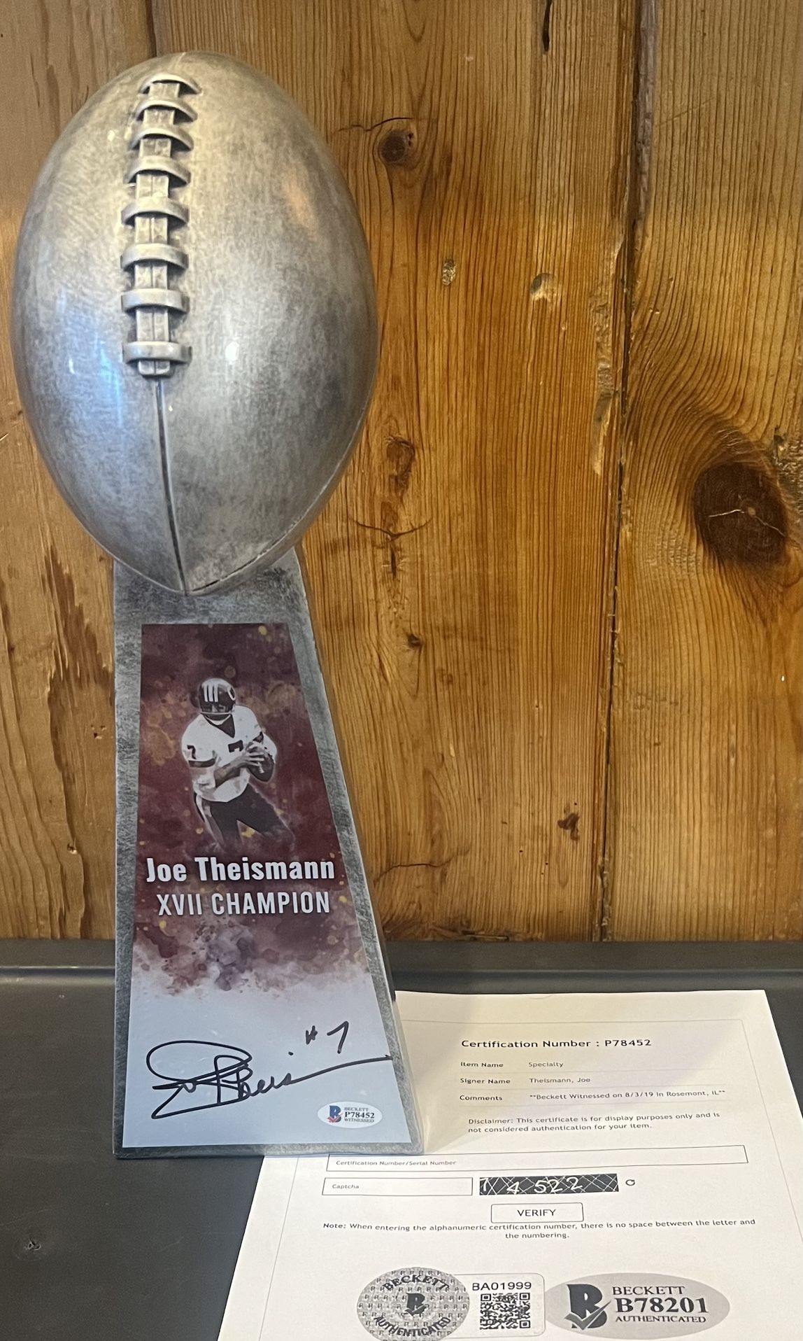 Joe Theismann-Signed Lombardi Trophy-COA-P78452-Beckett