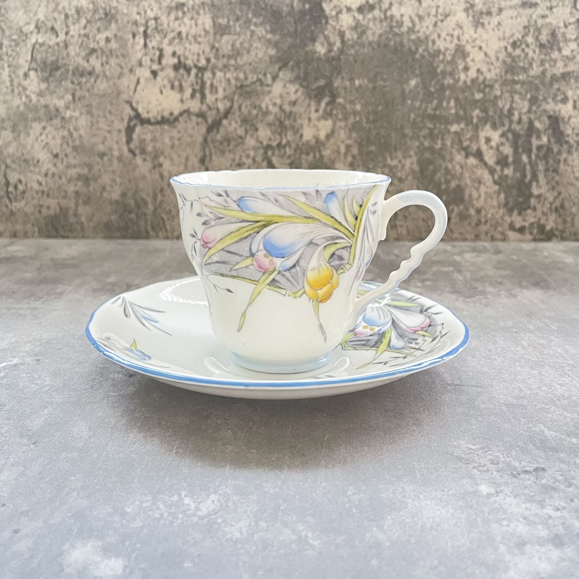 Vtg Royal Stafford Bone China England Tea Cup Saucer Set Lily Floral c1952
